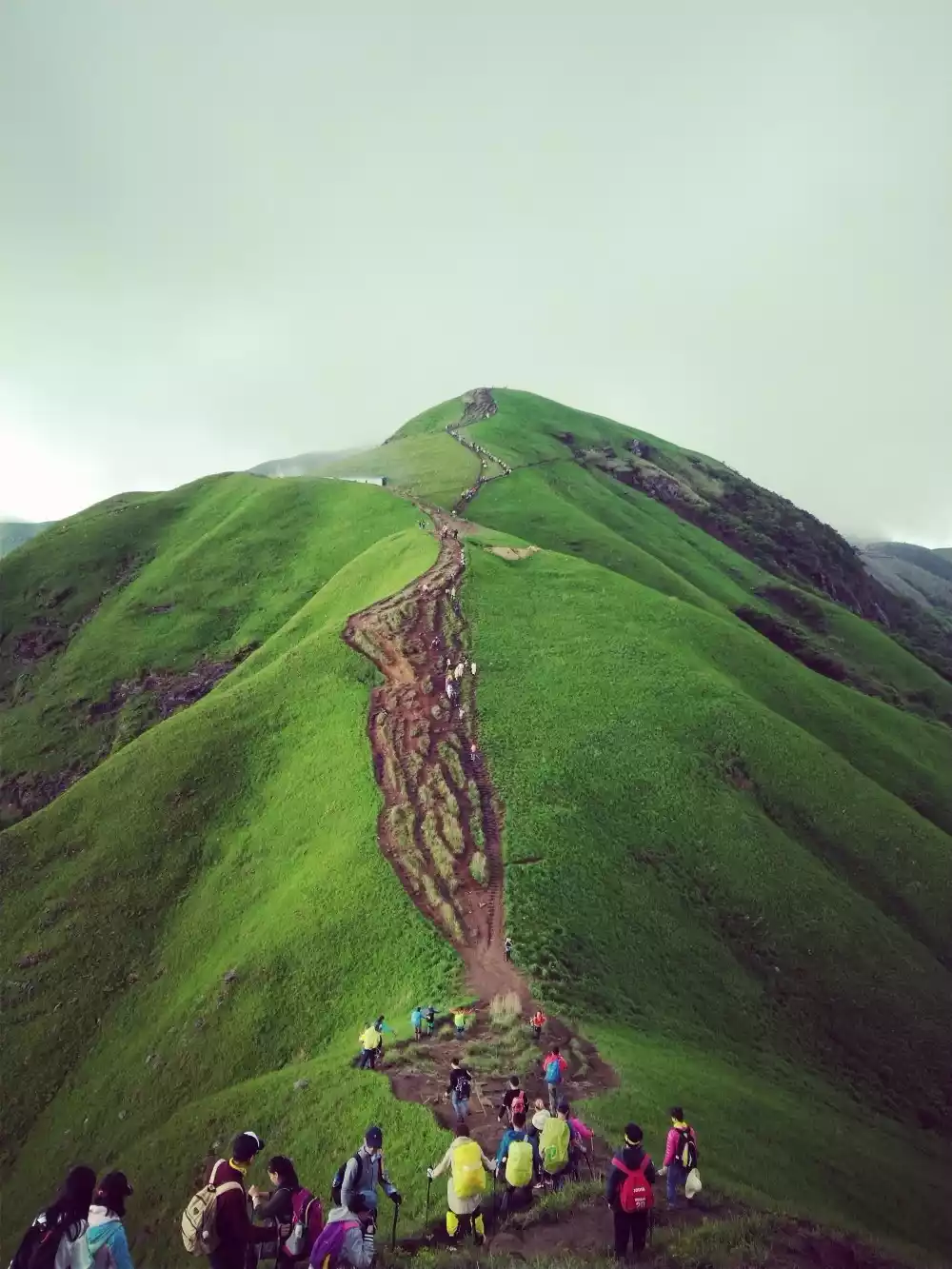 As the saying goes, "When two meet on a narrow path, the brave prevail!" While this sounds reasonable and is quite applicable in many situations, when hiking outdoors, one must appropriately control the inner courage. Take Wugong Mountain, for example. A mecca for hikers in East China, it's visited year-round, not to mention weekends and holidays. Although the trails between Wugong Mountain's peaks are relatively spacious, there are still many sections that can only accommodate one person. When hikers ascending and descending cross paths, they must give way to avoid congestion.