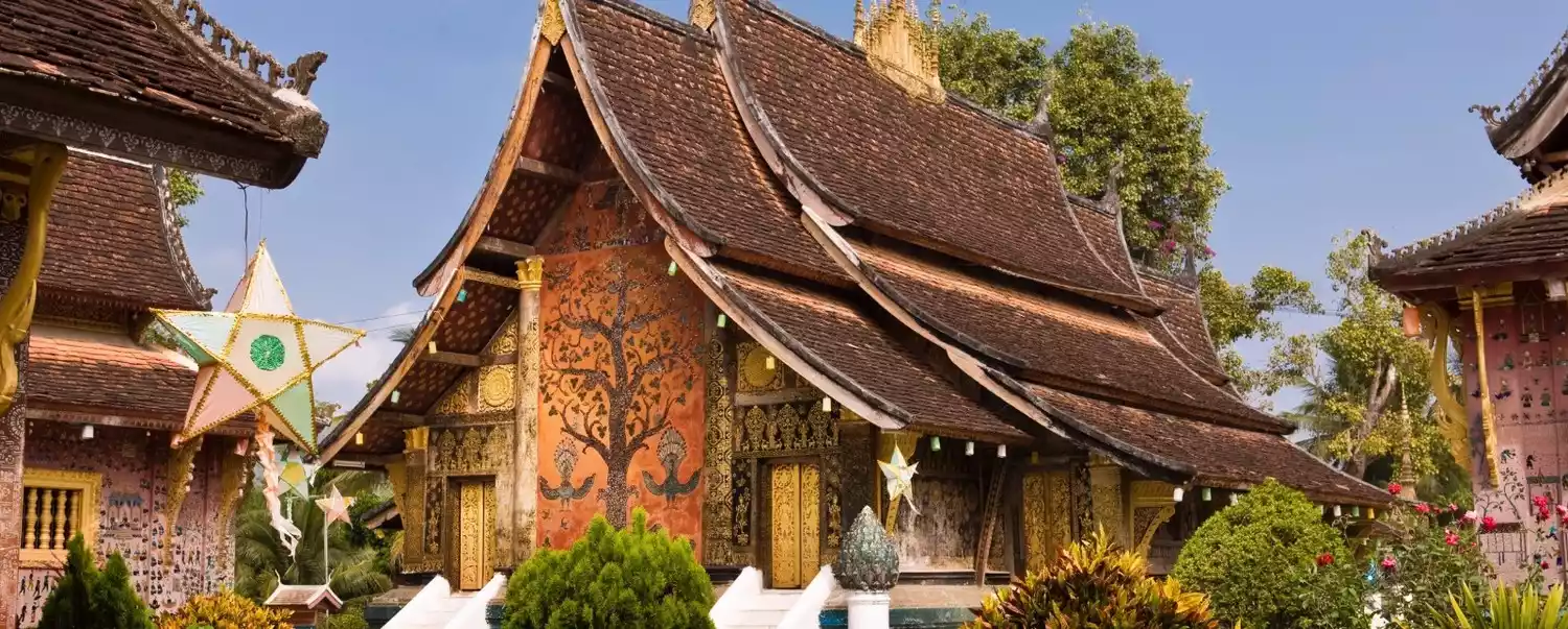Wat Xieng Thong is Luang Prabang's most magnificent and beautiful temple, located near the Mekong River. Built by King Setthathirat in 1560, it remained the royal family's private property until 1975. Its main hall embodies classic Luang Prabang temple architecture, with ornately decorated wooden pillars supporting a roof covered in a Dharma wheel. The Tree of Life, inlaid with various colored glass panels on the back wall, is particularly spectacular and a highlight of Wat Xieng Thong.