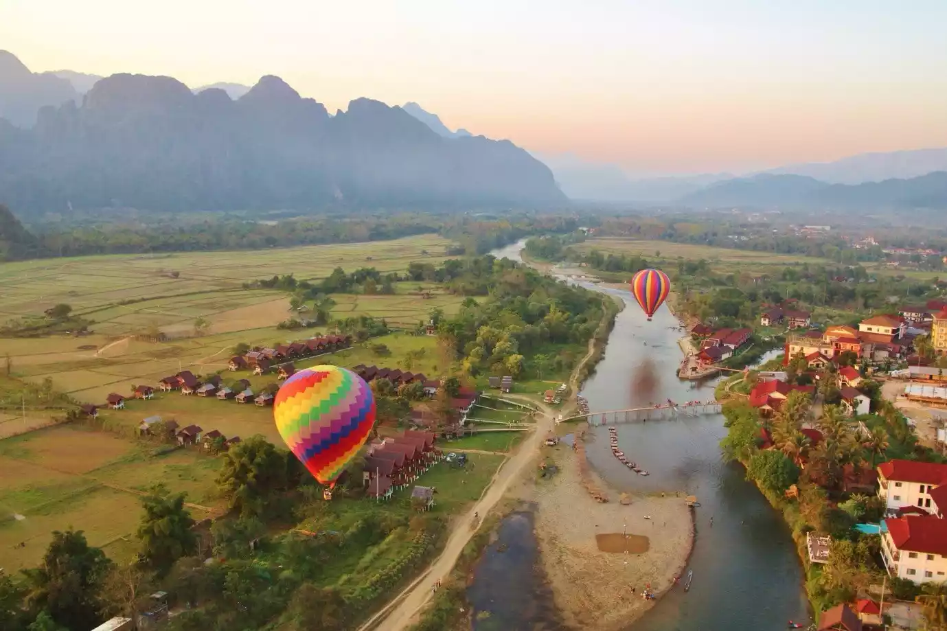 Make a reservation at your travel agency or hotel front desk, and the hot air balloon company will take you to your balloon destination. The balloon ride offers panoramic views of Vang Vieng's mountains, rivers, and cityscape from above. The entire balloon ride takes about 40 minutes and costs around US$90.