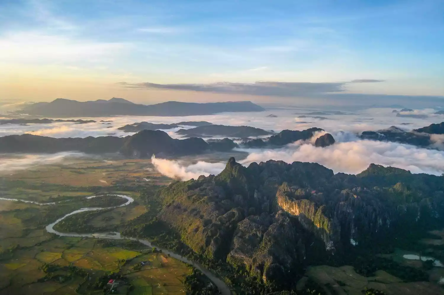 Located between the two major cities of Vientiane and Luang Prabang, Vang Vieng boasts picturesque scenery and a simple folk culture. It's a popular tourist destination in Laos, often referred to by Chinese visitors as "Little Guilin." Vang Vieng is renowned for its numerous caves, the tranquil Nam Song River flowing through it, the fascinating karst terrain, and the myriad of unique caves. Besides offering breathtaking scenery, Vang Vieng is also a paradise for outdoor activities, including caving, rafting, and ziplining.
