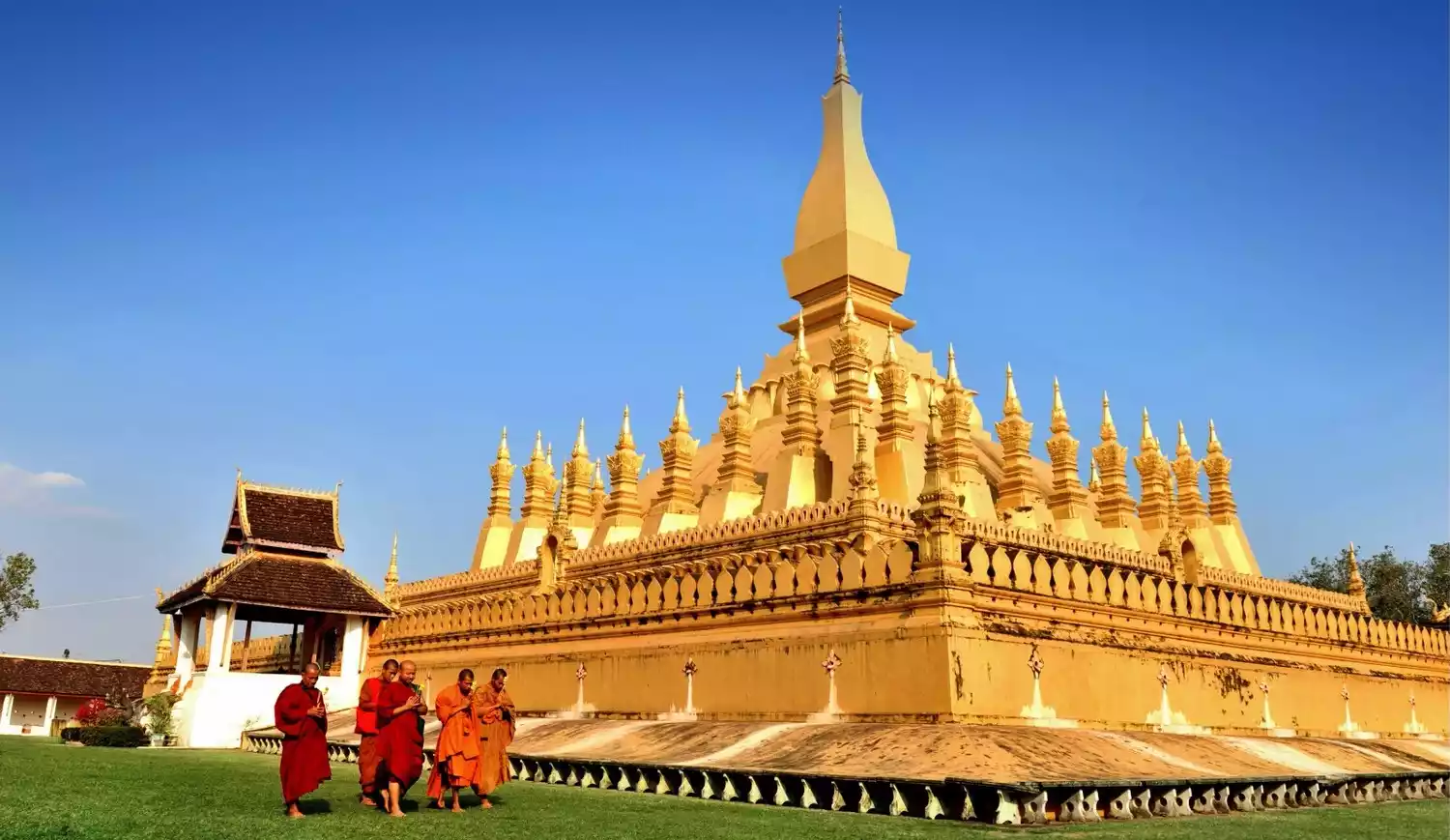 The beautiful golden Phra That Luang is Laos' most important national monument, a symbol shared by both Buddhism and the Laotian state. The main pagoda even appears on the national emblem. Built in 1556, Phra That Luang has survived numerous renovations to its present state. Covered entirely in solid gold, it can be seen from afar even on cloudy days. Legend has it that hair and bones of Gautama Buddha were once buried beneath the pagoda. The three-story pagoda stands 45 meters high and 54 meters wide. The main pagoda's base is also square, with a worship pavilion located in each direction. The second level houses 30 auxiliary pagodas, and the third level is covered in gold foil. The pagoda's base is designed to allow for climbers to ascend, with access and stairways to each level. The corridors are 85 meters long on each side and house various Buddha statues. Throughout history, That Luang Temple has experienced both glory and decline. Rebuilt in 1566, it was designated a sacred symbol of the Laotian nation in the 17th century. During wartime, the temple was destroyed and its treasures looted. Rebuilt again in the 1930s, it has become the most important pagoda in the Laotian people's hearts. The temple is the site of the That Luang Festival, held annually in early November. This grand temple fair lasts for half a month. During the festival, monks and believers from across the country flock to the square, where cultural and sports performances are held.