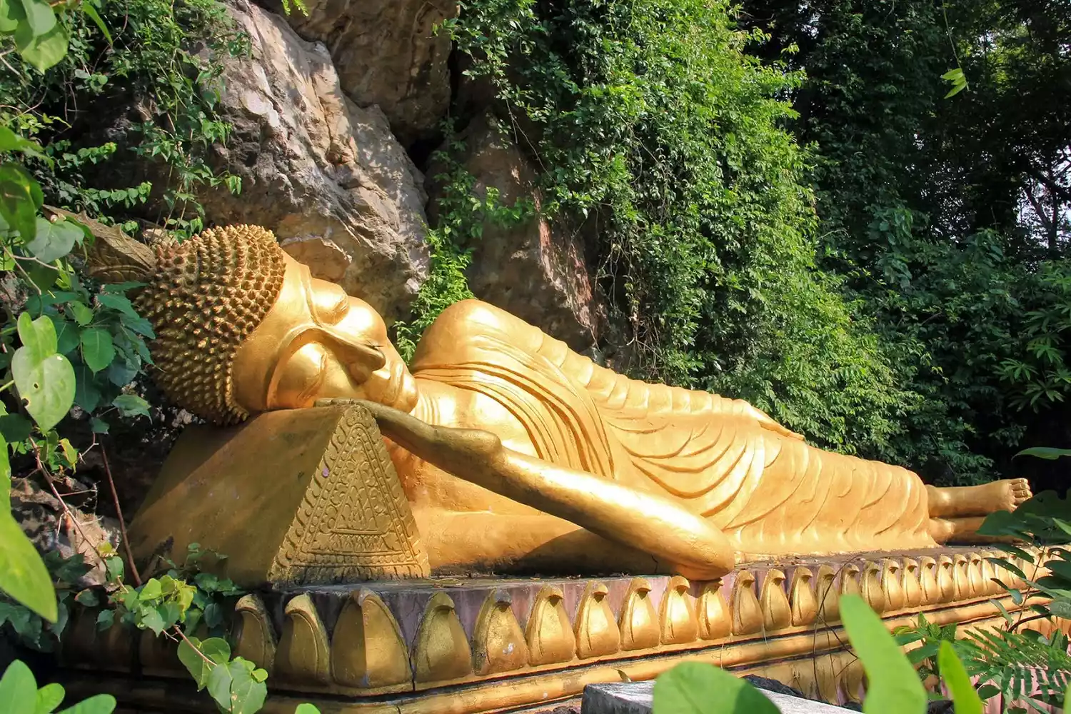 The massive Tham Phu Kham Cave is a sacred site for Laotians, largely due to its stunning blue lagoon. After a challenging climb, a refreshing dip in this stunning turquoise lagoon is truly a delight. The main chamber houses a Thai-style bronze reclining Buddha. The route to Tham Phu Kham Cave offers unspoiled countryside scenery, with several deep tunnels branching off from the main cave into the mountainside. At the foot of the mountain, a small river offers a relaxing spot. Beside a large tree, many people climb the tree and then jump into the river, enjoying the refreshing water flow.