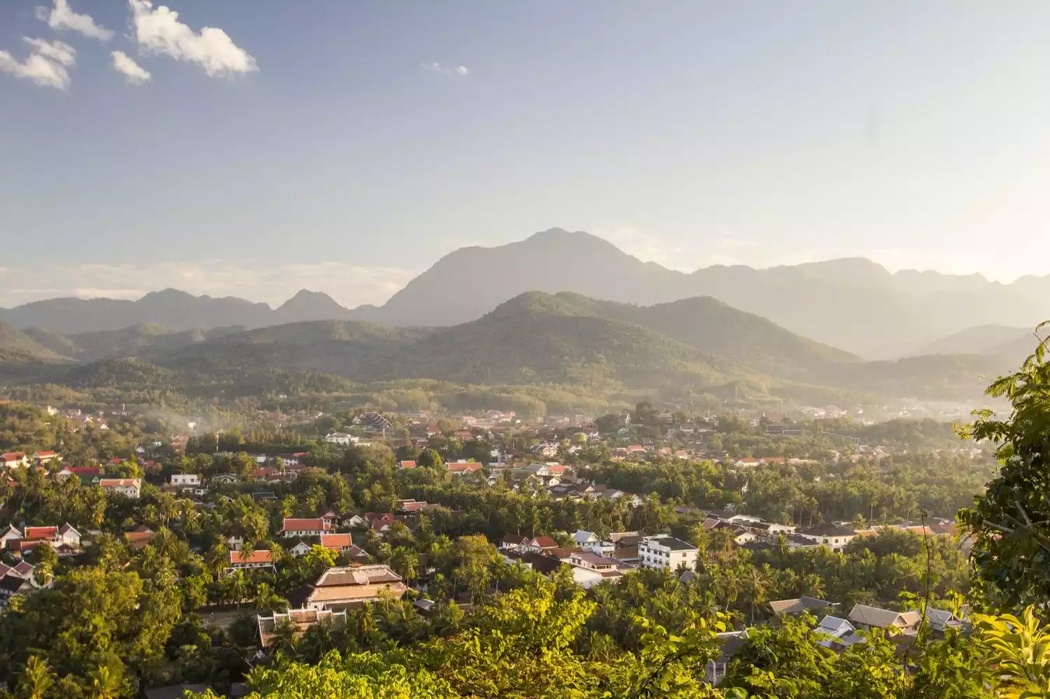 The most appealing aspect of Phu Si Mountain is watching the sunrise and sunset over Luang Prabang from its summit. Before sunrise, the town appears tranquil and peaceful, while at sunset, it bustles with activity. As the sun sets, sit at the foot of the pagoda and watch the Mekong River tinged with crimson as the setting sun takes in a 360-degree panorama of the city. From the summit, gazing around, dark green coconut trees eclipse the brick-red rooftops of Western-style buildings, creating a unique tropical atmosphere. It's like stepping into a fairyland of tranquility and peace. It's as if you've arrived in Duras's French colonial Vietnam, a sweet yet somewhat melancholic experience.