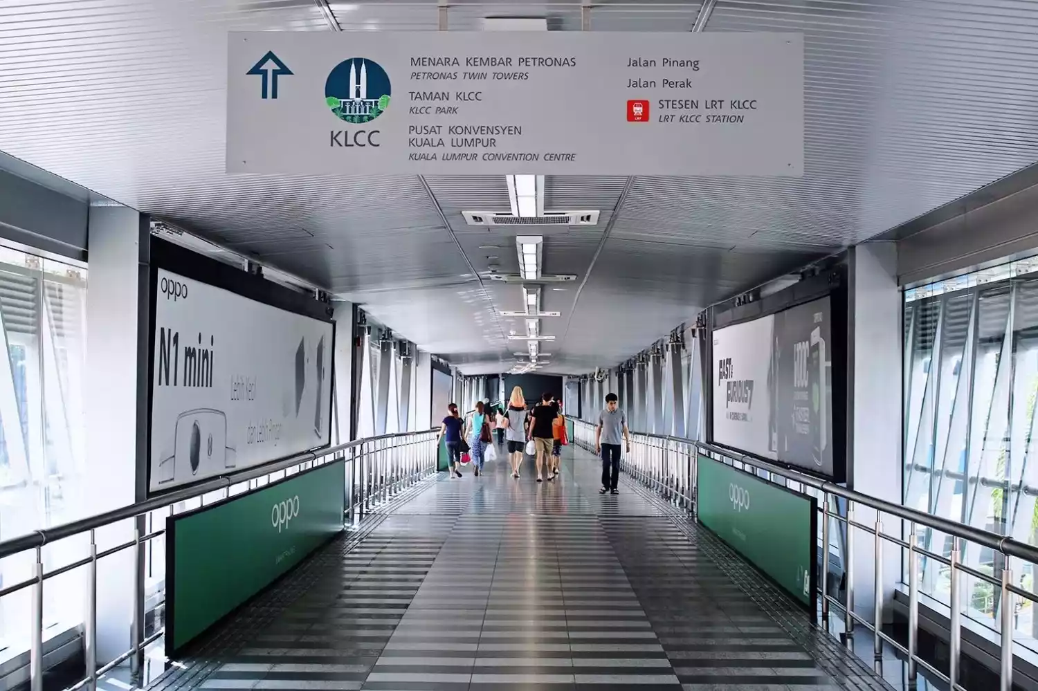 2. If you are coming from the Petronas Twin Towers, walk to the park side. Across the street you will see the Kuala Lumpur Convention Center. Go straight into the building and look for the Aquaria Oceanarium. Exit the building through the door at the Aquaria entrance. The entrance to the Skywalk will be on your right.