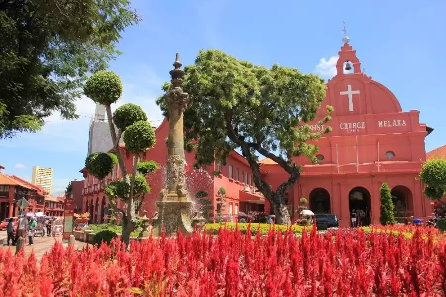 The square houses a historic Dutch-style Christian church, built in 1753 to celebrate the Dutch centenary of their rule in Malacca. It is the oldest church still in use in Malaysia. In the center of the square is the Queen's Fountain, built to celebrate Queen Victoria's 60th birthday. Other notable landmarks include the Dutch-style clock tower, the Zheng He Museum, and the A Famosa, a historic city gate. Collectively, this area is known as Dutch Square.