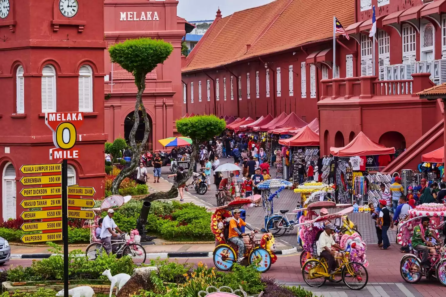 Malacca's most famous destination is Dutch Square. Red is the primary color of Dutch architecture, so the square is dotted with red and orange-red buildings. The most famous of these is the Stadthuys, said to have been built in 1650. It is the oldest surviving Dutch building in the Far East. Originally a Dutch residence and office, it is now the Malacca Museum.