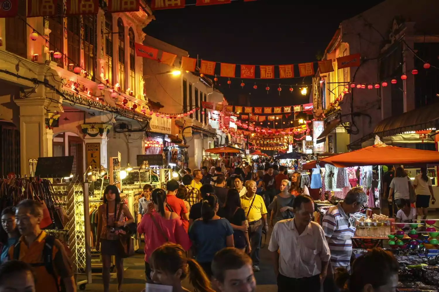 Jonker Street, Malacca's Chinatown, is the heart of the city and a must-see destination. Jonker Street is a vibrant and vibrant destination worth exploring. It stretches approximately 400 meters, with a width barely wide enough for two cars to pass. Most of the buildings along the street are two-story, with high roof beams and arcades, all over a century old. Emblazoned on the door lintels are characters like "Tong Fa," "Feng Shun," and "Feng Jie," inherited from ancestors, evoking the bustling commercial streets of yesteryear. The central street, Jln Hang Jebat, was once known for its antique shops, but today it's home to numerous shops and restaurants selling clothing and handicrafts. Well-known restaurants include Chung Hwa Tea House, Jonker 88, Old Town Chicken Rice Balls, and Geographer's Café. Every Friday and Saturday, the street transforms into the bustling Jonker Walker Night Market, filled with stalls selling food and trinkets. Jln Tokong in the north has many trustworthy Chinese shops selling red and gold lanterns.