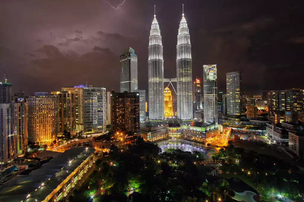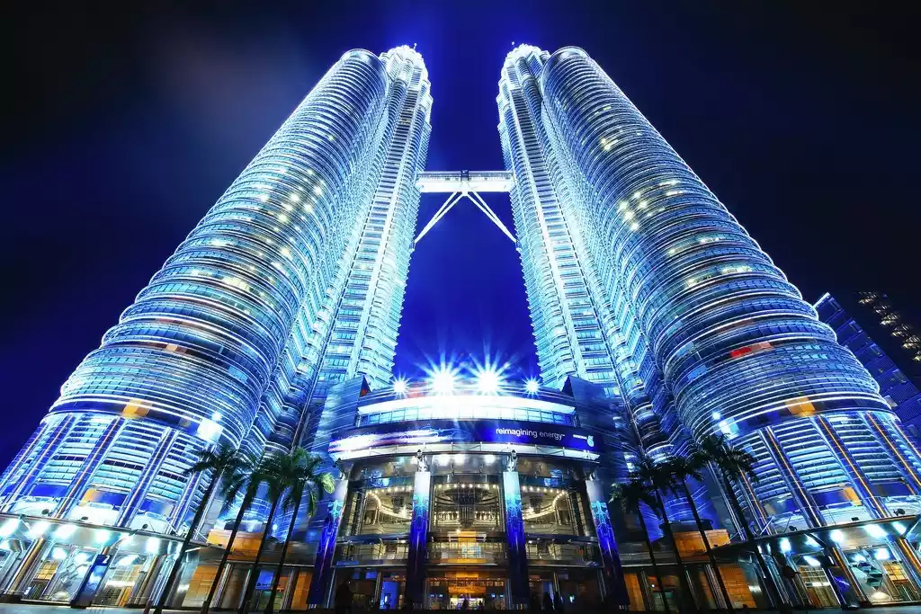 The Petronas Twin Towers are one of Kuala Lumpur's iconic cityscapes. Located in the heart of the city, the towers stand 452 meters tall and comprise 88 floors. The twin, identical towers stand side by side, connected by a pier. Their design draws inspiration from Islamic teachings.