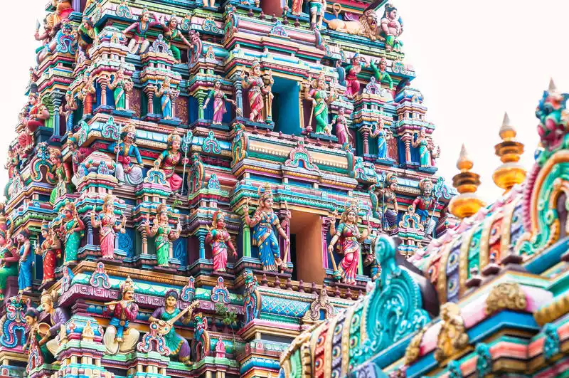 The oldest Hindu temple in Malaysia, it was built in 1873 by Indian workers who migrated from Tamil Nadu in southern India. The temple entrance is crowded with vendors selling garlands, and the temple's highlight is the tower above, which is covered with colorful Hindu statues.