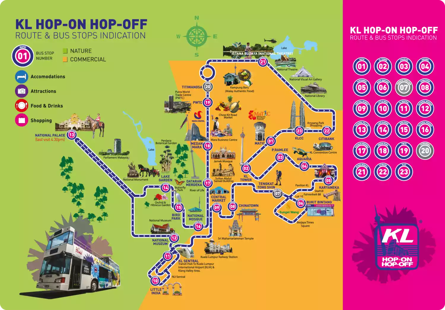 Kuala Lumpur's hop-on hop-off sightseeing bus is a popular activity among European and American tourists. Tickets can be purchased at any stop or online in advance. For just RM45, you can hop on and off the double-decker Kuala Lumpur sightseeing bus as often as you like for 24 hours. The bus routes cover all of Kuala Lumpur's attractions, shopping malls, and leisure areas. Passengers can enjoy the sights from the open-top rooftop or relax inside the air-conditioned cabin to soak in the city's charm.