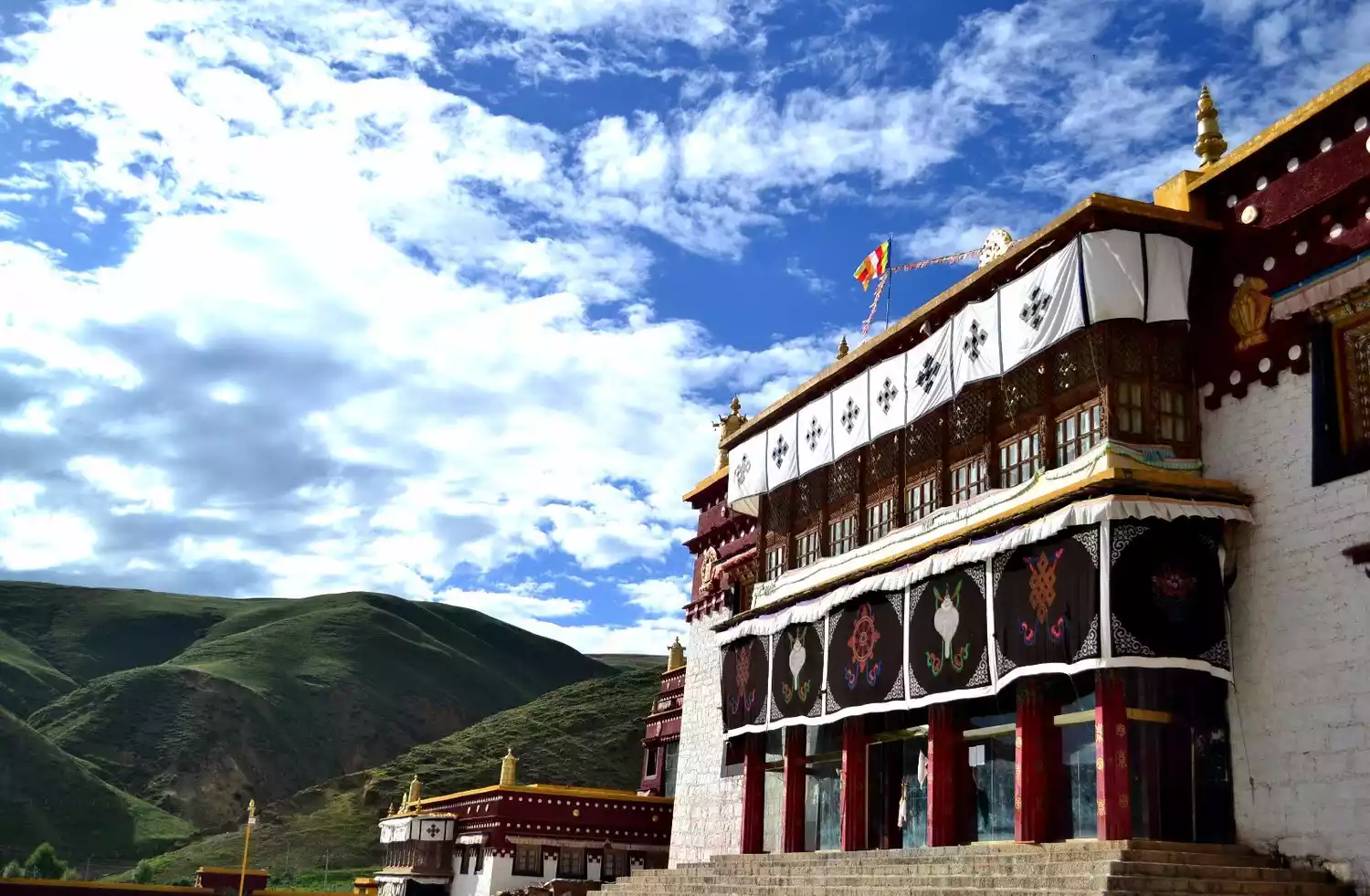 Speaking of Litang, one kilometer from Litang County lies the famous Litang Temple, also known as Changqingchun Keer Temple, situated on a hillside north of the county seat. Originally a Black Sect temple, it was converted to the Yellow Sect during the Wanli period of the Ming Dynasty, when the Third Dalai Lama passed through the area and consecrated it. Litang Temple, a renowned Gelugpa temple in Kham, is located on the slopes of Zhongmoraka Mountain, approximately one kilometer north of the county seat. The temple houses various gilded bronze statues of Sakyamuni, Buddhist scriptures, a saddle used by the Third Dalai Lama, and murals from the Ming and Qing dynasties, among other precious artifacts. Every year on the fifteenth day of the first lunar month in the Tibetan calendar, the temple holds a butter flower sculpture festival.