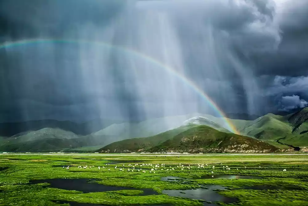 I prefer Xinduqiao in midsummer to the bleak golden autumn. Everything is brimming with life, and any photo I take looks like a Windows desktop. Endless grasslands, winding streams, rolling hills, scattered Tibetan villages, cattle and sheep grazing peacefully... The plains of western Sichuan blossom beautifully. This is Xinduqiao, a captivating "world of light and shadow," a "photographer's paradise."