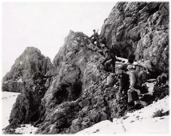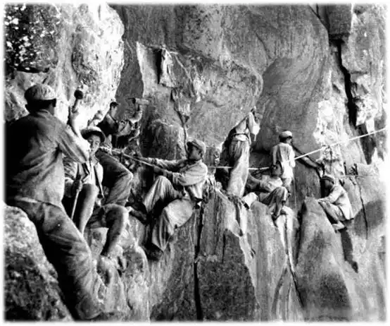 (In 1954, road builders on the Sichuan-Tibet Highway excavated the steep cliffs on both sides of the Nujiang River)