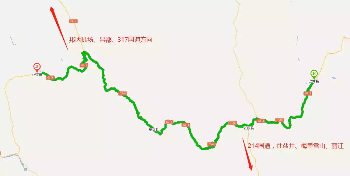 [Batang-Jinsha River Bridge-Mangkang-Zuogong-Basu] Total length: 459km