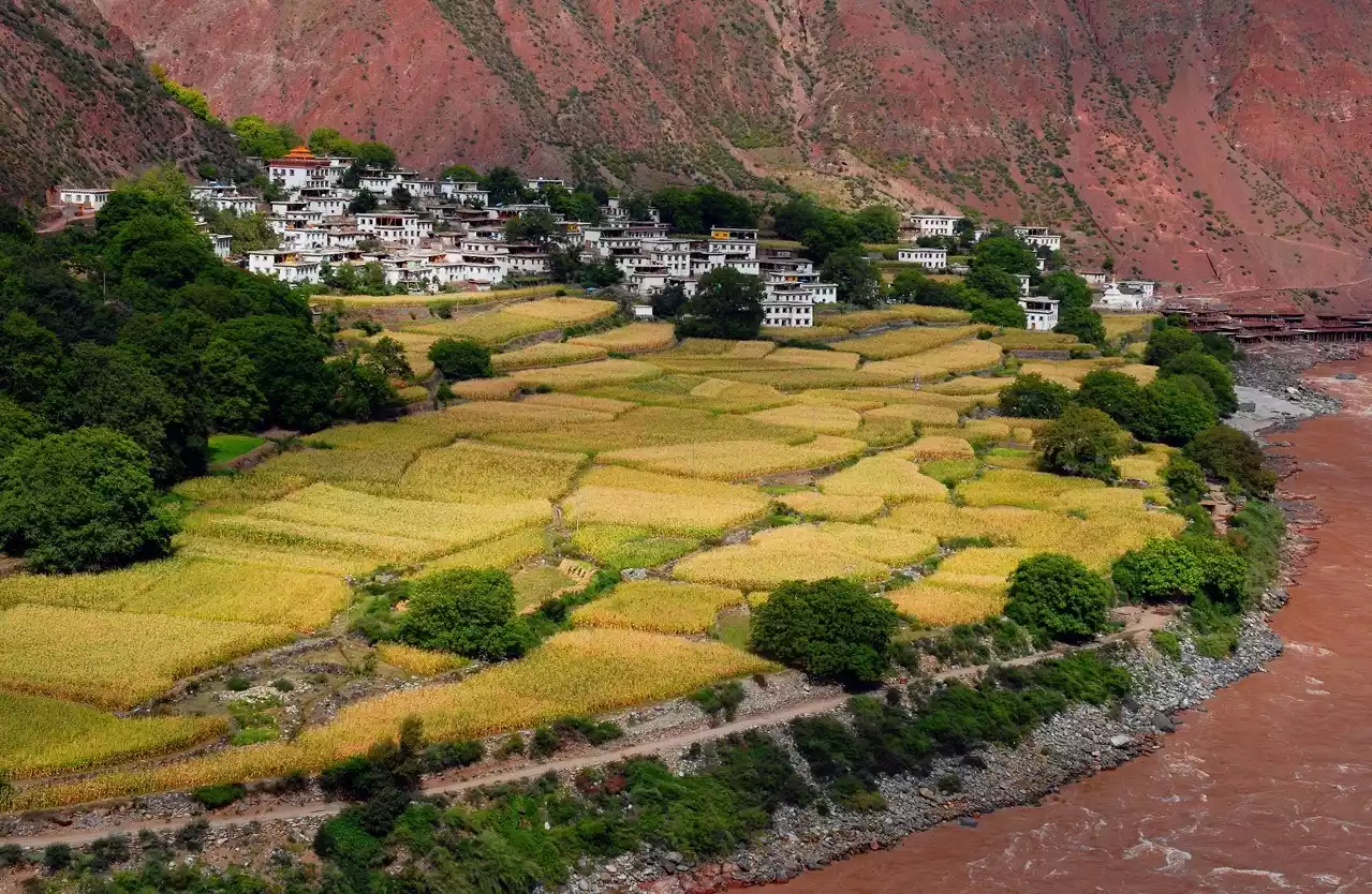 Continue along the Jinsha River. If you happen to arrive in July when the barley is ripe, the scenery will be very beautiful.