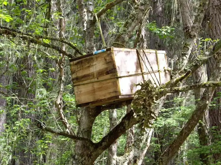 [Tree Burial] As you walk through the primeval forest, absorbing the supersaturated oxygen, if you pay close attention, you'll notice small wooden boxes hanging from the trees. That's right, tree burial. Tree burial is a very ancient burial practice. Its main form involves placing the deceased in a large tree deep in the mountains or outdoors, leaving it to weather. Later, a slightly modified method involves displaying the deceased on a specially constructed scaffold. Because the body is left to weather after being placed, tree burial is also known as "wind burial," "hanging burial," "wooden burial," "empty burial," or "suspended burial." Tree burial reflects the practice of living in trees, and therefore, represents a vestige of primitive life in its funeral customs. Tree burials are ubiquitous in the Bomi primeval forest. Even as a boy, entering the forest gives me chills, let alone girls, who scream with fear. Some even report seeing skeletons beneath the trees.