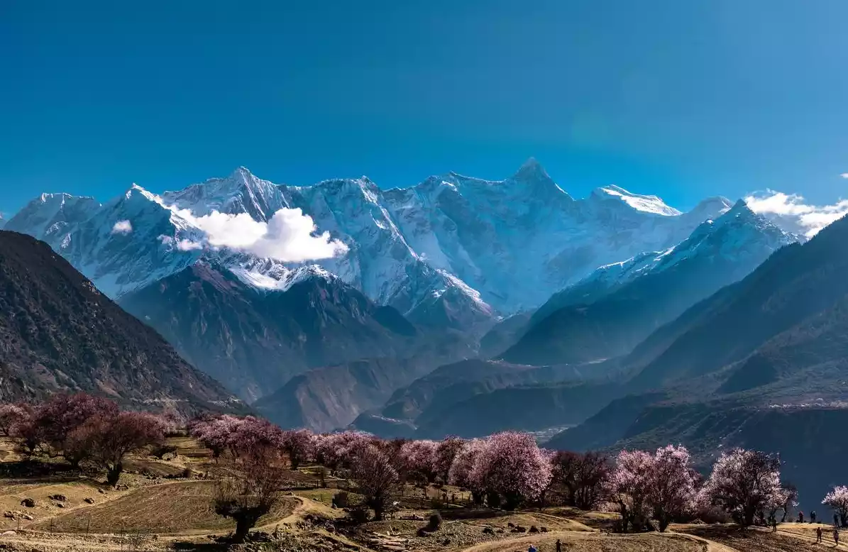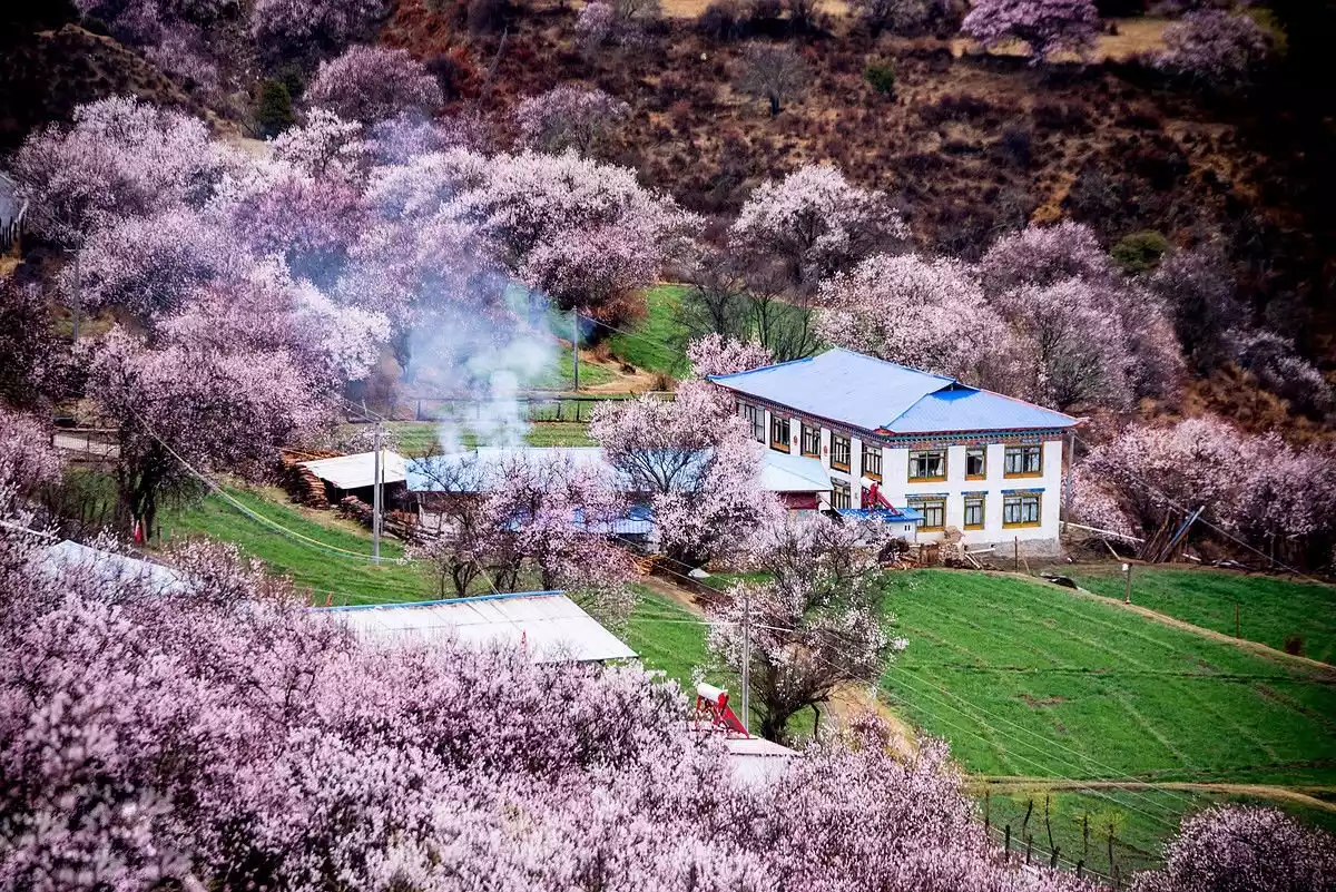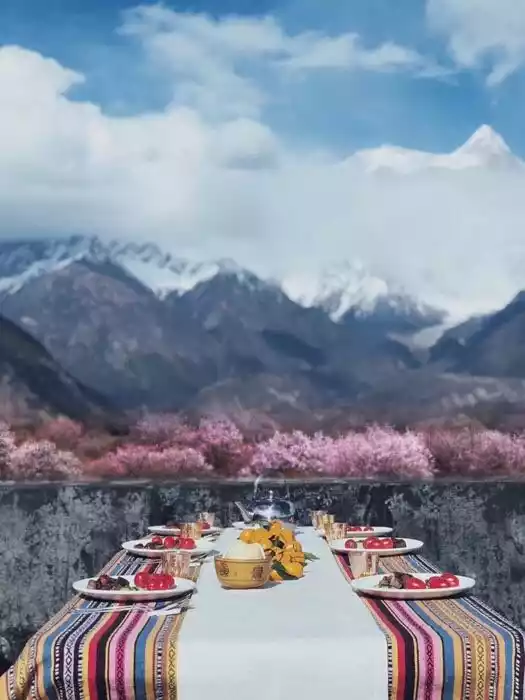 In the season when peach blossoms are in full bloom, come to Suosong Village in Nyingchi and have a buffet at the foot of Mount Namjagbarwa.