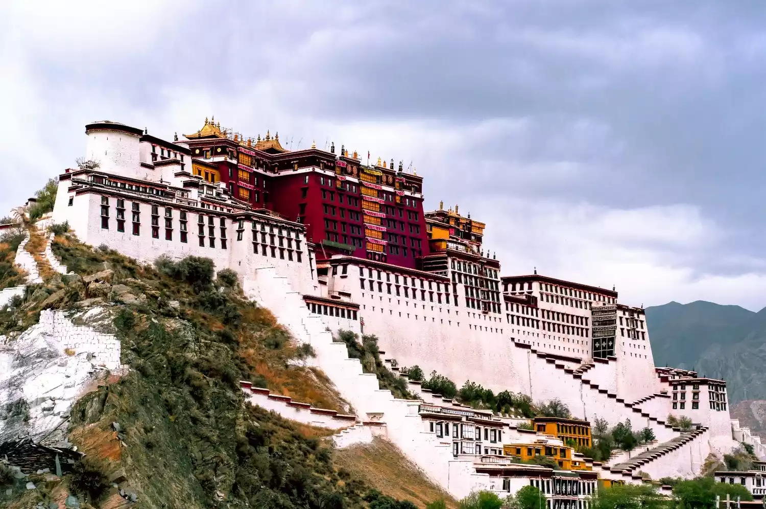 The Potala Palace is built about one kilometer west of the Jokhang Temple and can be reached on foot from the Jokhang Temple.