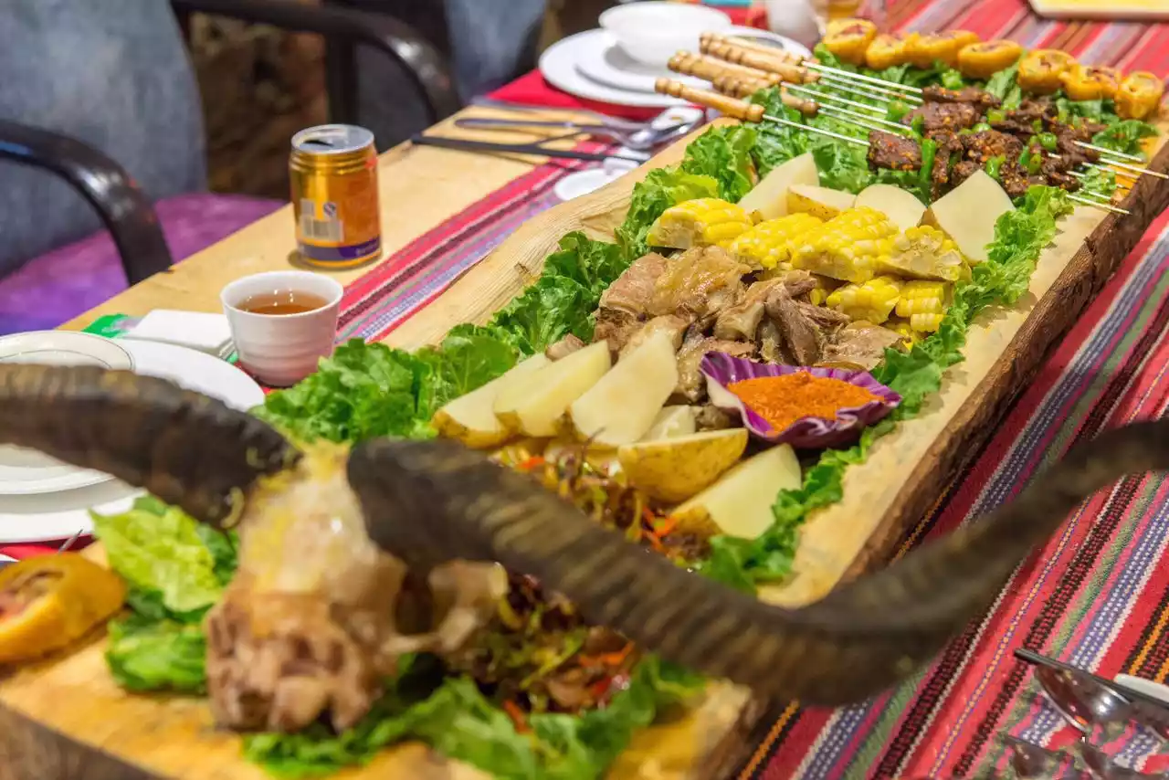 3. Savor an authentic Tibetan feast. When you visit Lhasa, why not try some authentic Tibetan cuisine? Eat a ball of tsampa, sip some butter tea, and stuff your mouth with a handful of plump beef or mutton, and you'll feel a sense of complete satisfaction.