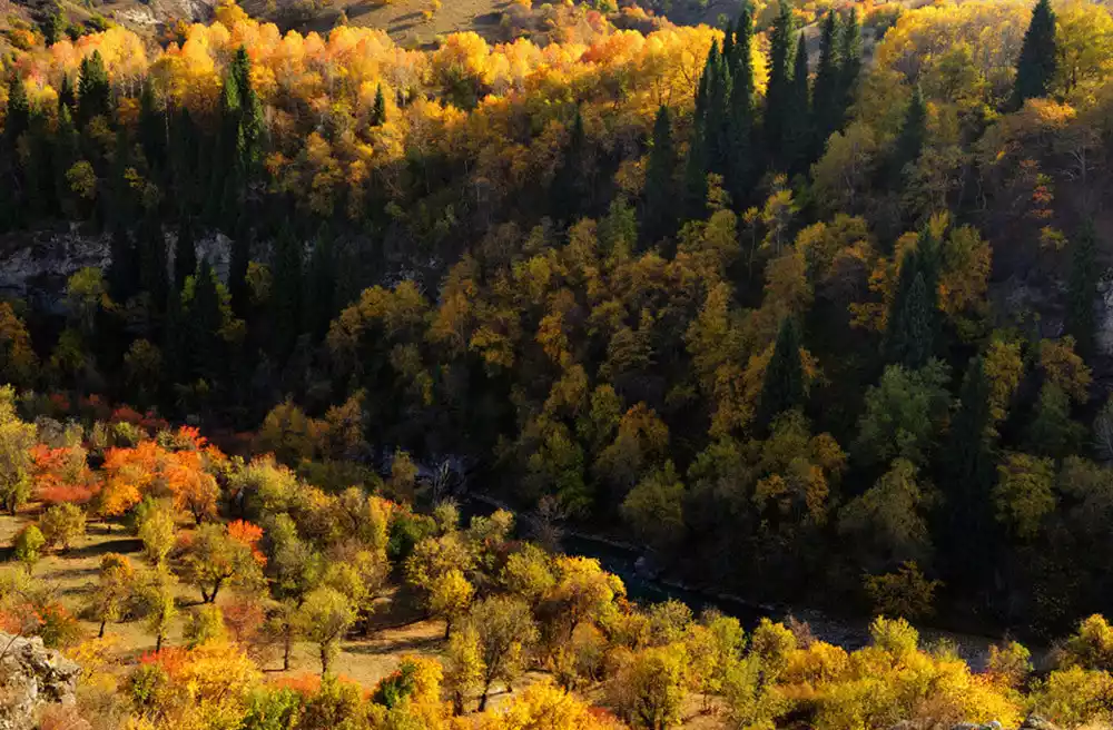 Best Seasons: April-May, September-October. The spring sky grasslands are nature's most beautiful gift, with fully grown meadows and snow-capped mountains still unmelted, blending into a breathtaking landscape. In autumn, the golden poplar forests of the Nalati River Valley grasslands create a desolate and lonely beauty.