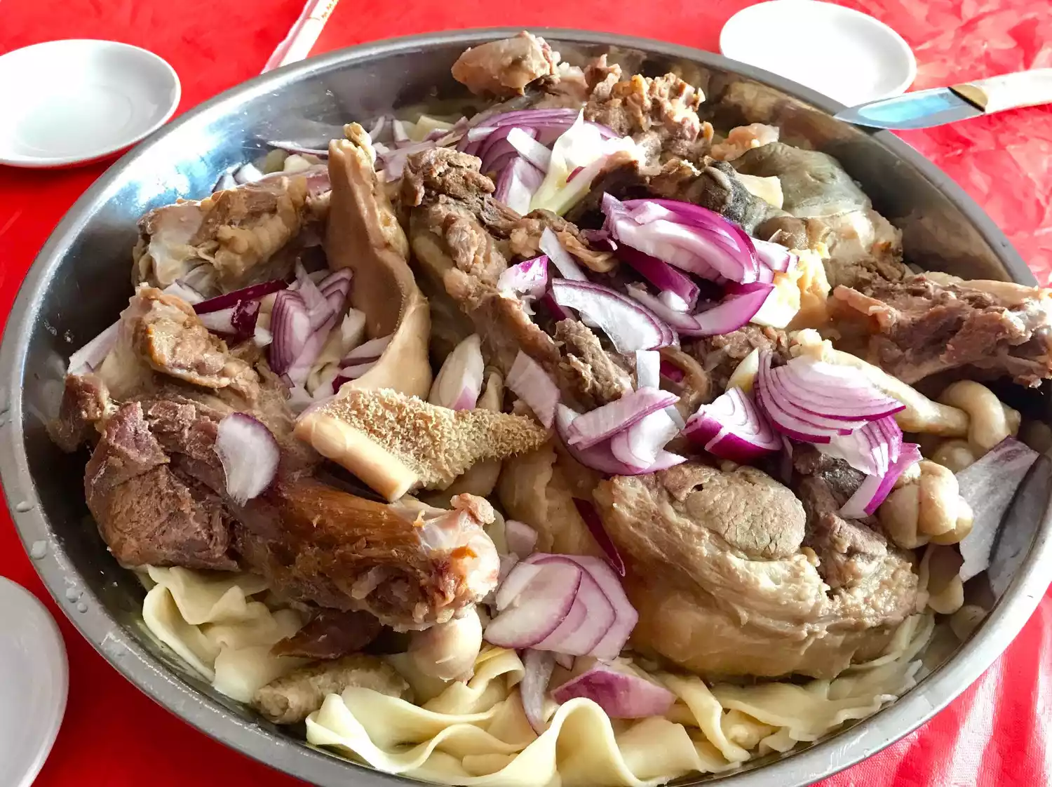 It is a food with a special grassland flavor. It is also a delicious dish for entertaining guests in Kazakh homes. First, the meat is boiled over a high fire, and then the noodles or flat noodles are boiled with the original broth. The meat is taken out and placed on a plate, and the meat pieces are placed on the noodles. This is Naren. When eating, it can be poured with onion juice or mashed garlic and other condiments according to personal preference. It tastes extremely delicious and has an endless aftertaste.
