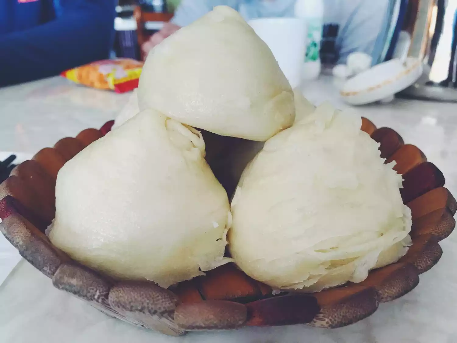 Baked buns (Uyghur: shamusa) and thin-skinned buns (Uyghur: pitelmantu) are beloved foods of the Uyghur people. Baked buns are primarily baked in a tandoor (a naan pit). The wrapper is made from unleavened dough, rolled thinly and folded into a square. Fillings made from diced lamb, onions, cumin powder, and other ingredients are then filled and baked in the tandoor. Thin-skinned buns are steamed buns, made with wrappers so thin that the filling is almost visible through them when cooked. The wrapper tastes as if it has melted into the tender, oily flavor of the meat.