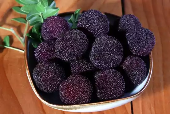 The water chestnut variety is native to Yuyao, Ningbo. Its fruit, which turns purple-black when ripe, resembles a water chestnut, is called the water chestnut variety. This variety is the best-tasting of the various bayberries, with a sweet, slightly sour flavor, a small core, and high juiciness. It's also the most difficult to store.