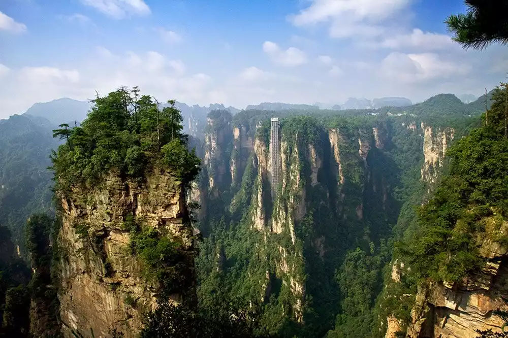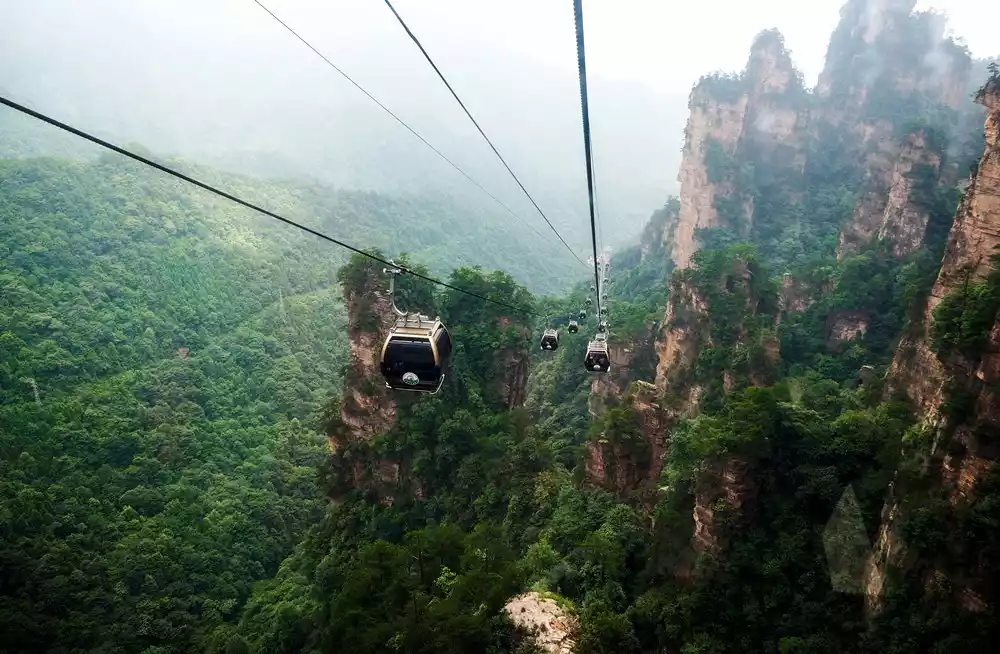 The Tianzi Mountain Cableway is like traveling through a magnificent painting, with endless beautiful scenery in sight.