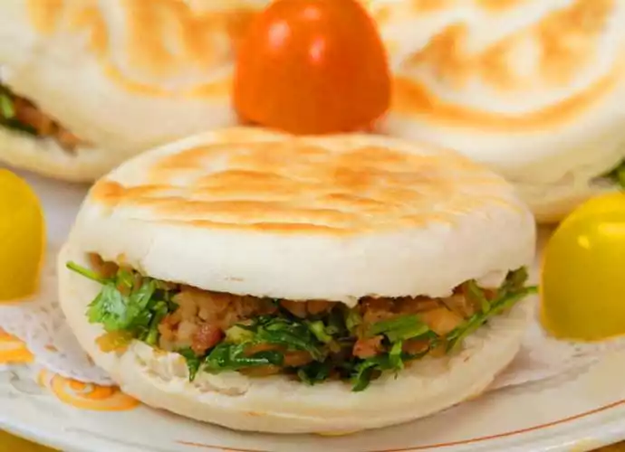 In Shaanxi Province, there are "Lazhi Roujiamo" using Baiji steamed bun, Rousaozi Jiamo from Xifu, Baoji (vinegar is added to the meat sauce), and Tongguan Roujiamo from Tongguan (different from Baiji steamed bun, its bun is browned on the outside, with clear stripes, layered on the inside, puffed, crispy on the outside and tender on the inside, and cooked to perfection. It is best eaten when the temperature is hot. The old Tongguan Roujiamo is a hot bun with cold meat sandwiched between it. The bun is crispy and the meat is fragrant, refreshing but not greasy). A bite of Roujiamo will fill you with the fragrant juice.