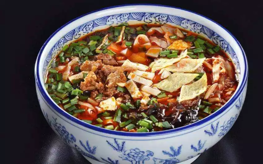 Saozi means diced meat, and the color matching of saozi noodles is particularly important. Yellow egg skin, black fungus, red carrots, green garlic sprouts, white tofu, etc. are both beautiful and delicious, a delicacy on earth.