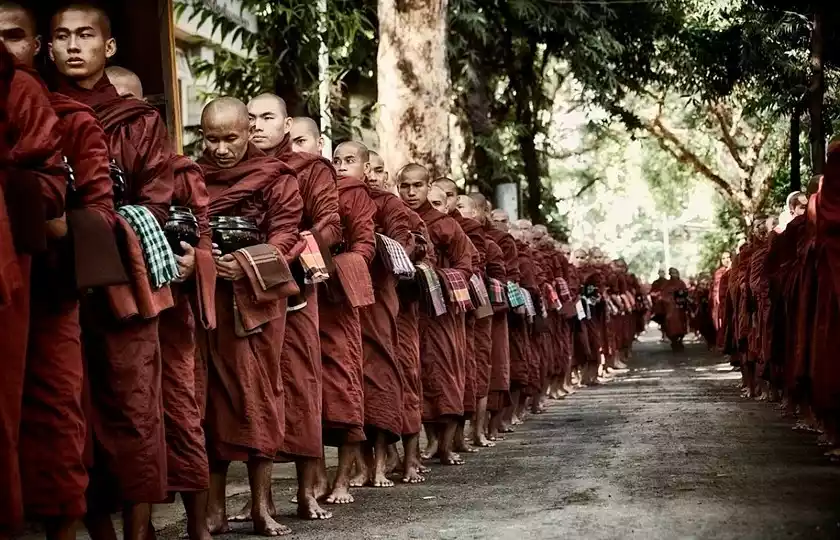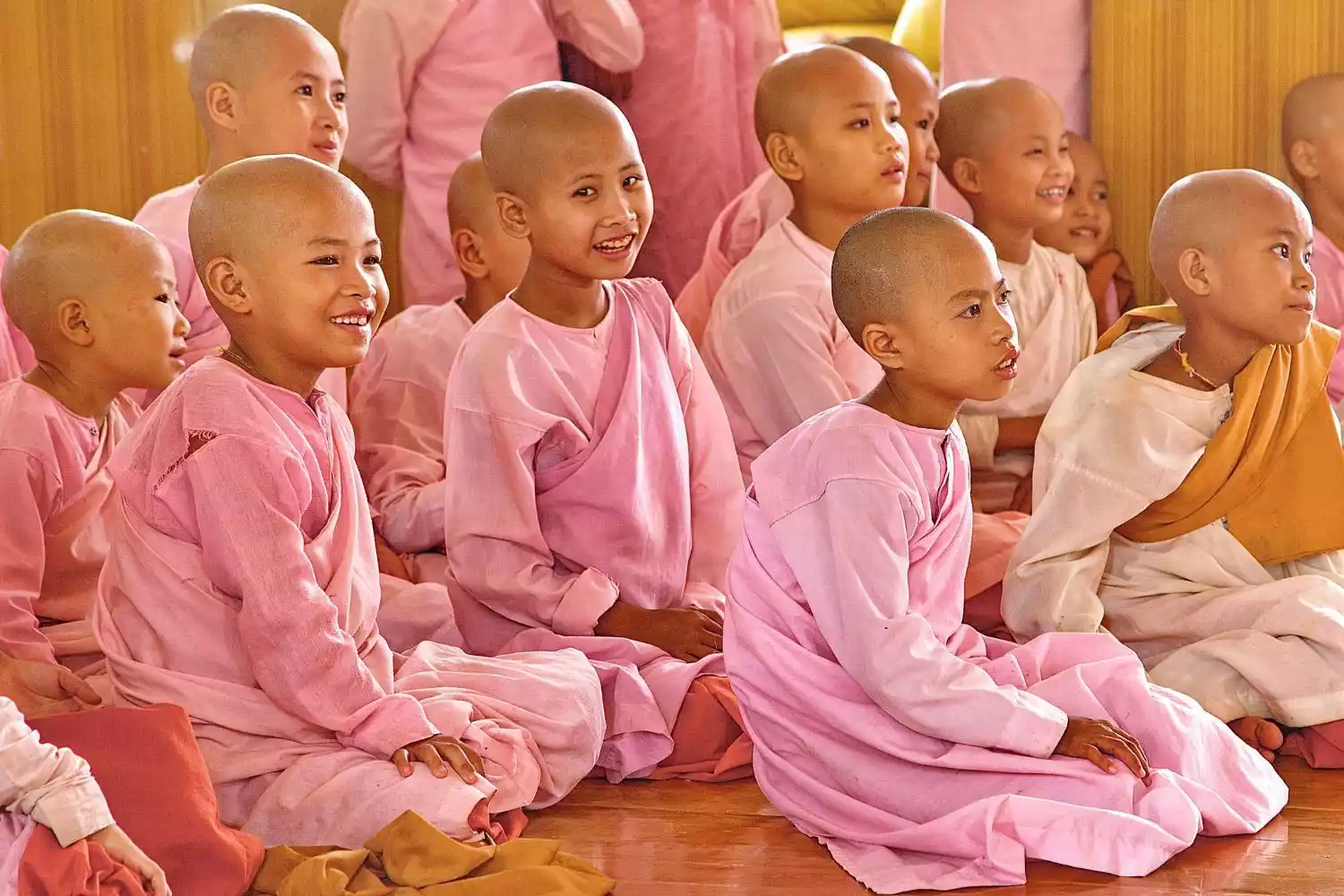 In Myanmar, giving alms is more than just a tradition; it's a fundamental part of Buddhist practice. For centuries, a simple piece of biscuit or pastry has connected believers, monks, and the Buddha. This moment feels profoundly solemn and sacred. It's a direct exchange, a dialogue, and a fusion between heaven and earth, between humans and gods, and between believers and monks. Our Myanmar Advanced Photography Special will also visit a nunnery dedicated to the pink faith, a unique photo opportunity.