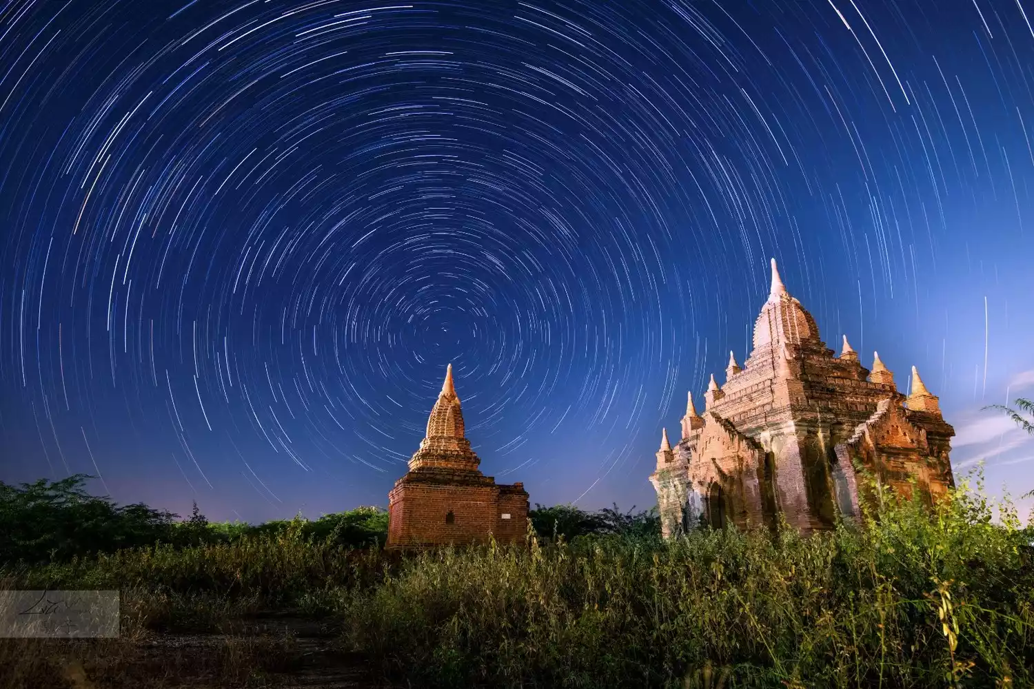 Tourists special experience :in-depth tour with half a day of free activities; photography tour of Bagan pagoda night view starry sky photography teaching