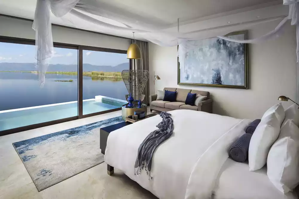 Special experience for tourists :Enjoy exclusive Myanmar luxury holiday line, Inle Lake luxury five-star resort enjoy the lake and mountain scenery