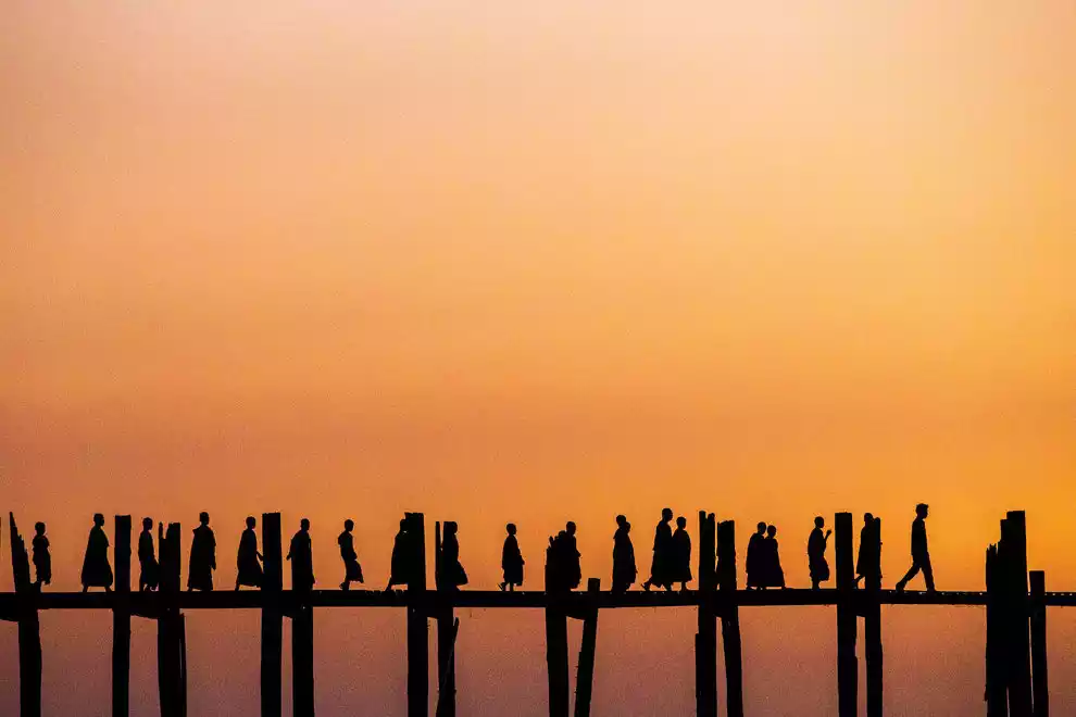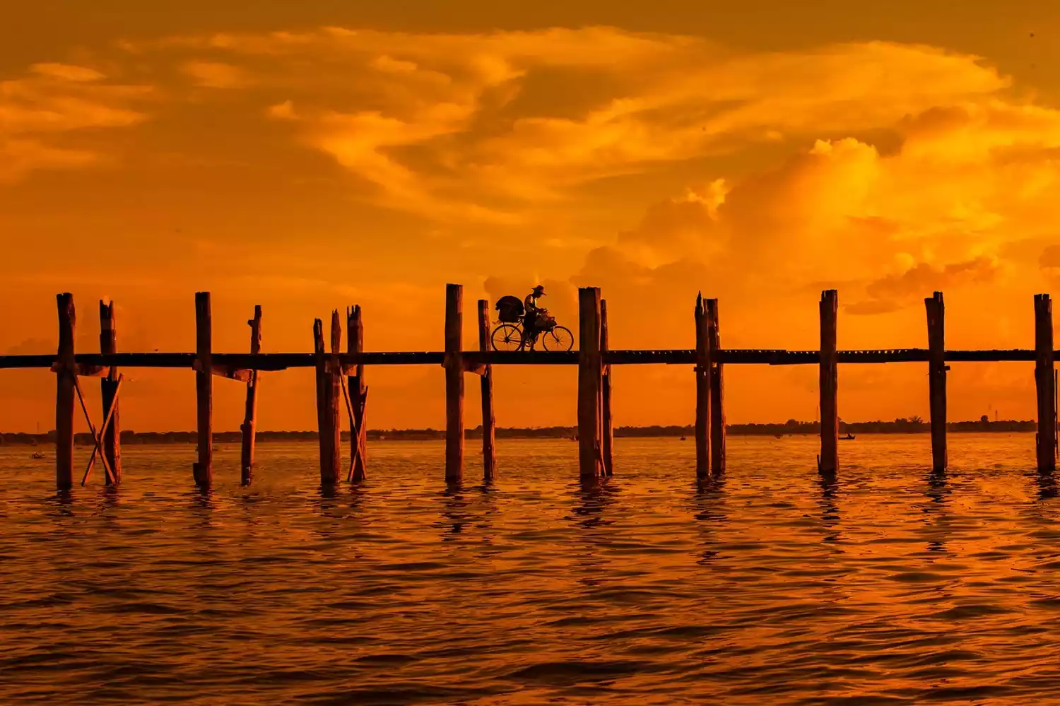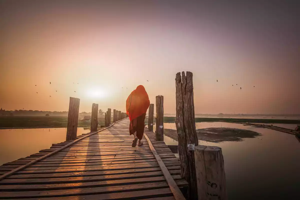 U Bein's Bridge, built in 1851, is 1,200 meters long and made of 1,086 solid teak logs. It is the longest teak bridge in the world. The best time to visit U Bein Bridge is at dusk, when it is the best place to watch the sunset.