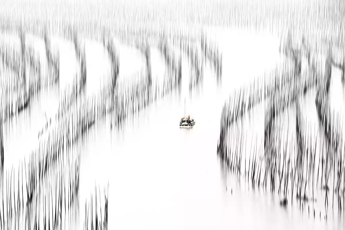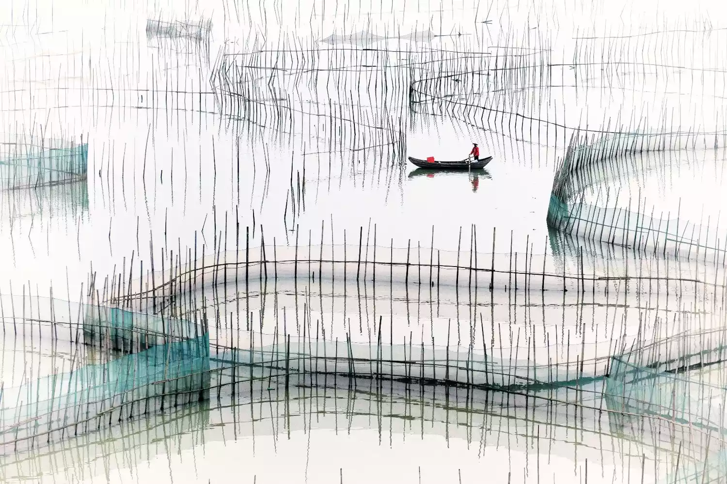 3. Make good use of the lines formed by the artificial breeding racks in the mudflats. The large-scale marine aquaculture in Xiapu mudflats has added lines and regular geometric patterns to the mudflats. These patterns can be used to form a single picture with a strong sense of rhythm.