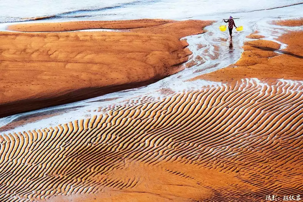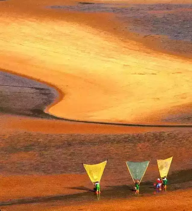 The tiger-skin beach, circular bends, fishermen digging clams and picking shellfish, caring for and harvesting seaweed, and silk nets on the mudflats make the scenery blend with humanistic and regional elements, and the changing scenery makes the shooting content quite rich.