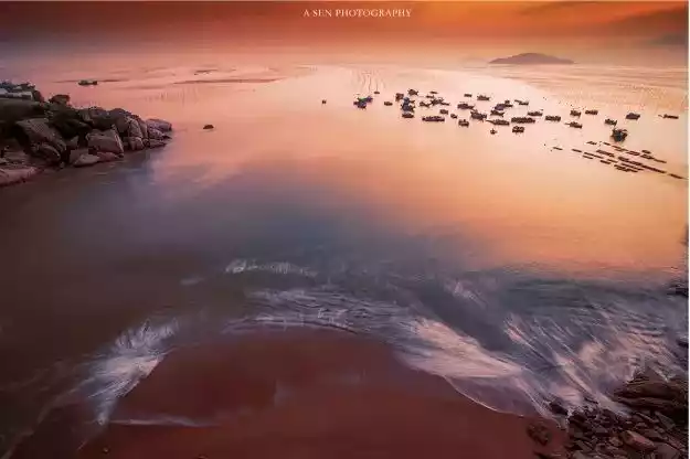 Beidou is a great spot for sunrise photography. The fish rafts and reefs along the coast provide a great foreground. Paired with the clouds on the horizon and the drifting fishing boats, framing the shot using the rule of thirds, with the waves supporting the clouds or the fishing boats, creates a strikingly themed image.