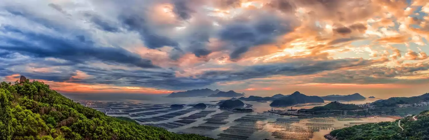 Dongbi is a small fishing village facing the sea in Sansha Town, Xiapu. It is nestled between mountains and the sea, with a broad view and is extremely spectacular, especially during the seaweed season, with strange fishing rods, boats shuttling back and forth, and the setting sun melting into gold. It is one of the ideal spots for photographing sunset seascapes.