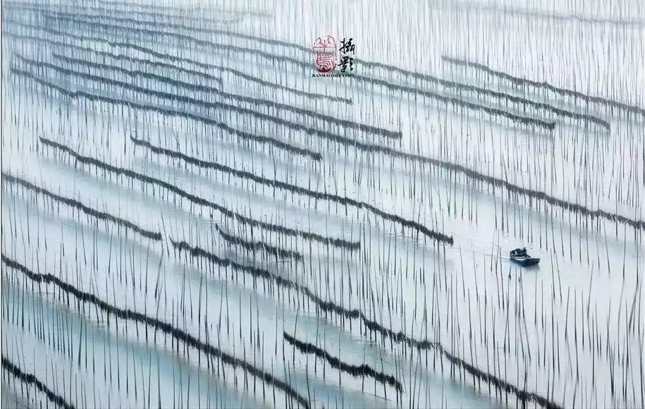 Third, make good use of the lines created by artificial farming racks on the mudflats. The extensive marine aquaculture on the Xiapu mudflats has added lines and regular geometric patterns to the mudflats, which can be used to create a single, rhythmic image.
