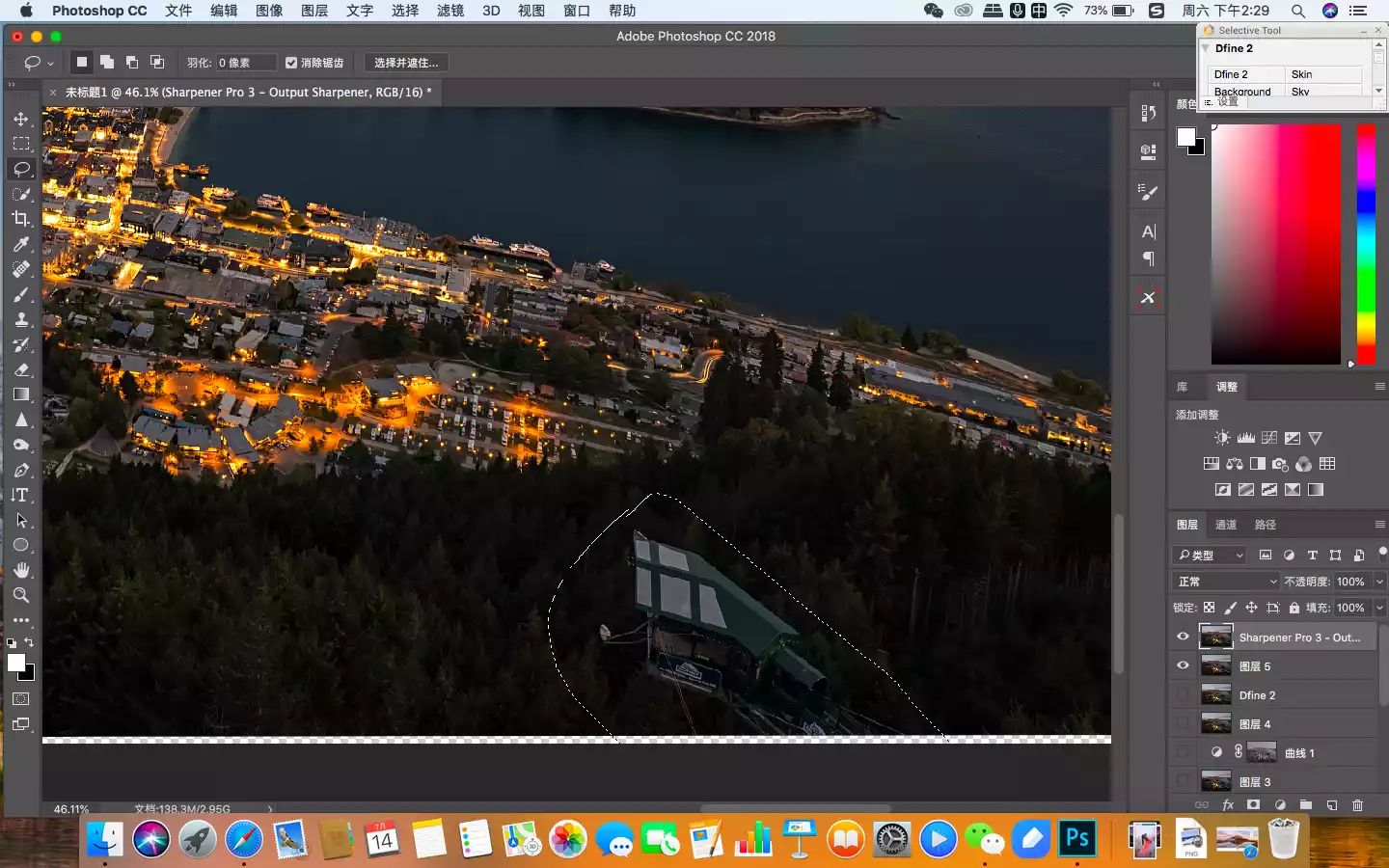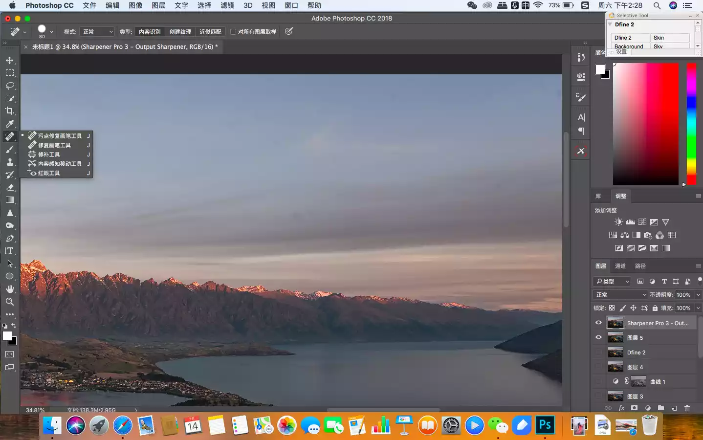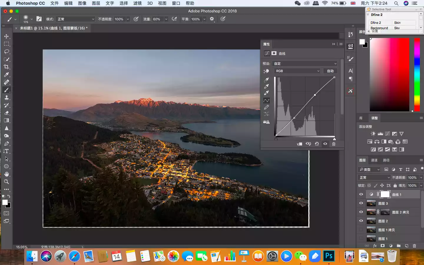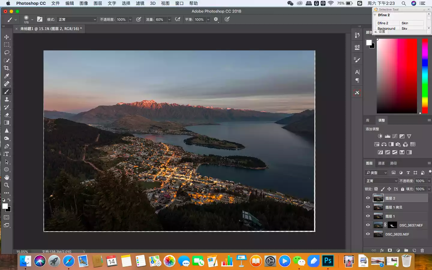In this picture, the areas that need to be enhanced are the buildings in the town and the snow-capped mountains in the distance, so I used the mask function of the filter's automatic recognition to select them.