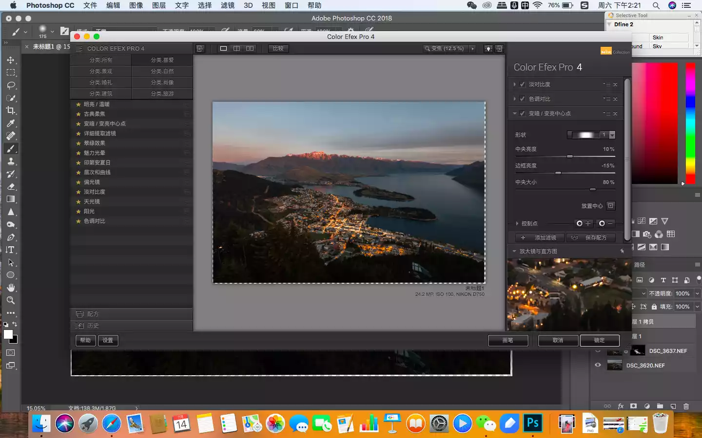 In order to highlight the center of gravity, there is also a very useful filter called "Darken and Brighten Center Point". Just put the cross in the center on the town buildings. It can reshape the light and shadow, so that everyone's vision is more layered and focused on the center of gravity.