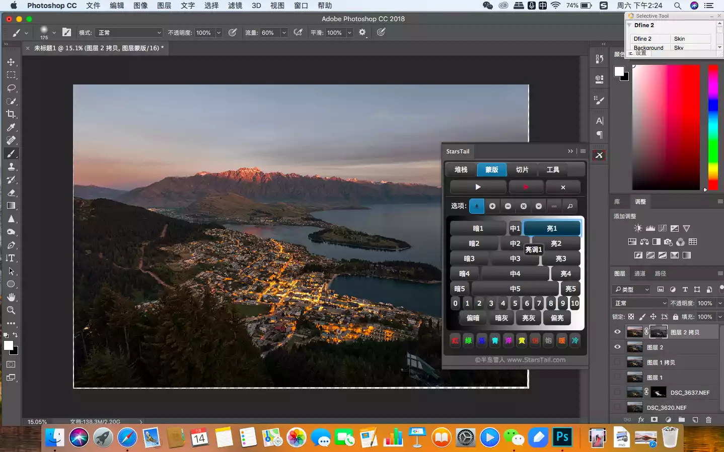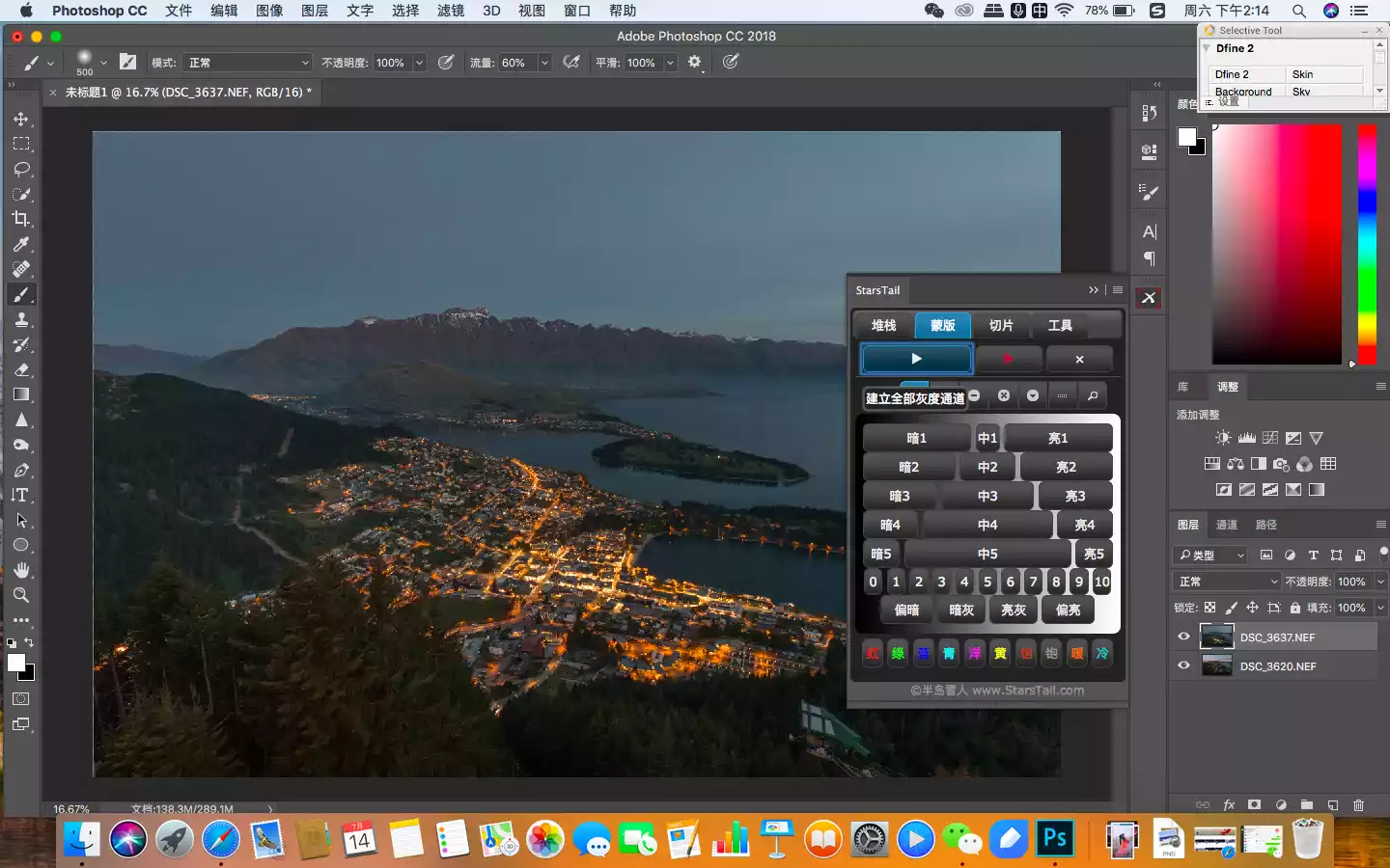 The Starstail plug-in was developed by photographer Peninsula Snowman. Its main function is to complete the tedious operation of creating highlights, shadows, and mid-tone selections with one click. The foreign plug-in of the same type, TK, is also good and can be tried.