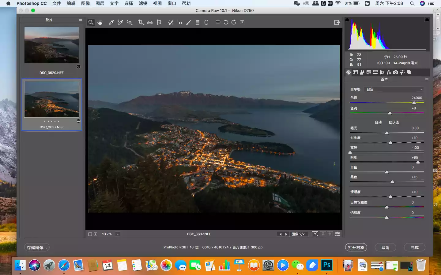 First, import the two photos in RAW format into ACR. In the ACR interface, adjust the color temperature, hue, highlights, shadows and other parameters of the photos. I want to emphasize that there is no need to force the color temperature of the two photos you plan to combine to be the same, which is a common mistake made by many novices.