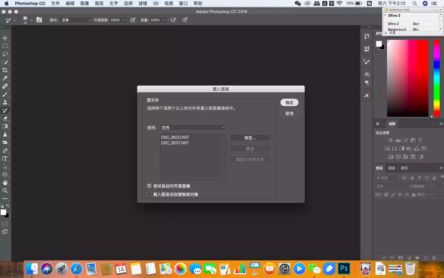 Next, I imported the two photos into a stack. It's important to note that the two photos were taken an hour apart, and I was standing on a busy viewing platform, so slight tripod shaking was inevitable. Therefore, please make sure to check "Auto Align."