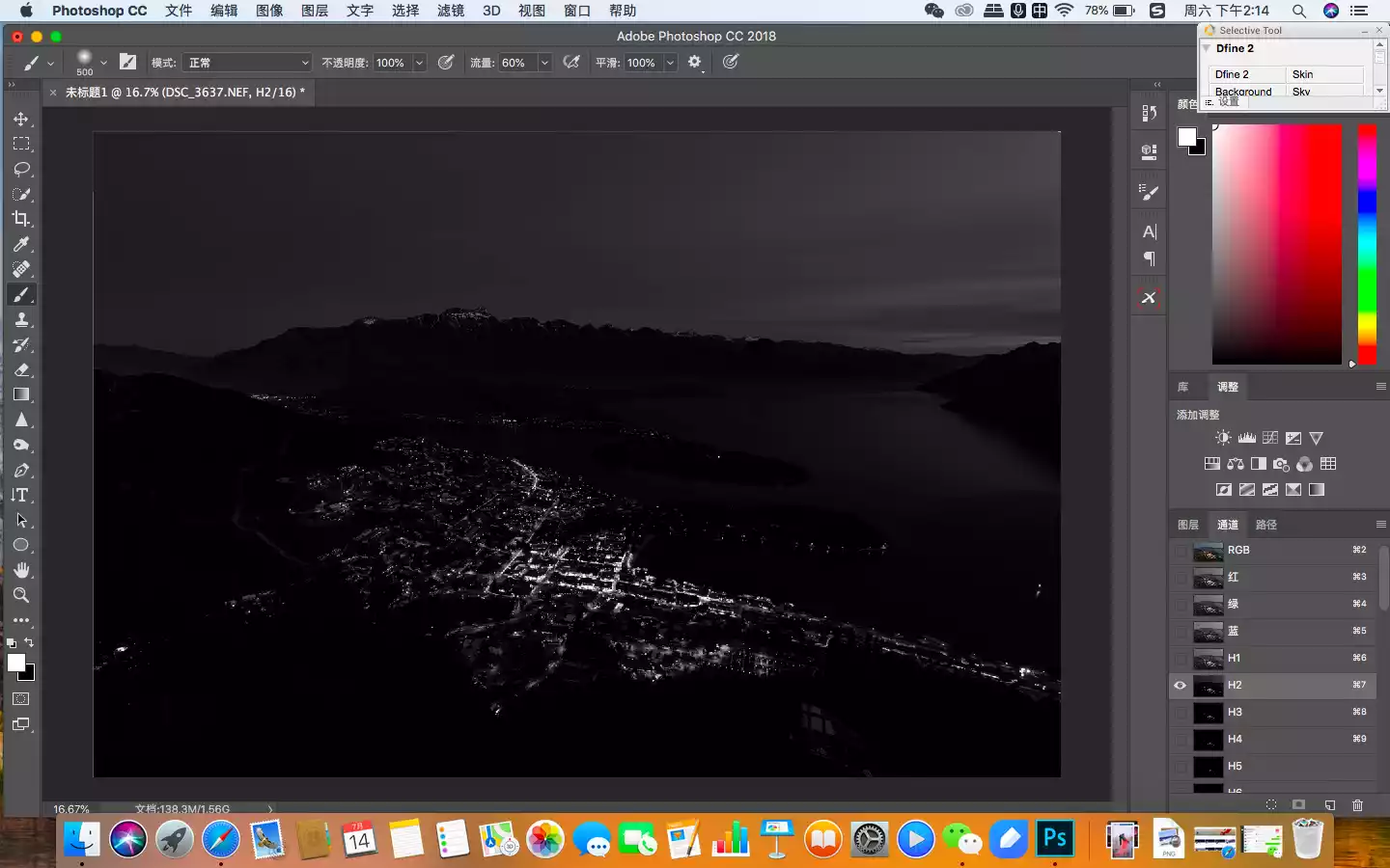 After importing, I started to observe the photos and found that the photo above we wanted was only the lights and tracks, which were relatively bright. Then we could use the brightness masking technology to select the area and select the brighter part as the highlight channel. I used the Starstail plug-in to create the brightness channel first.