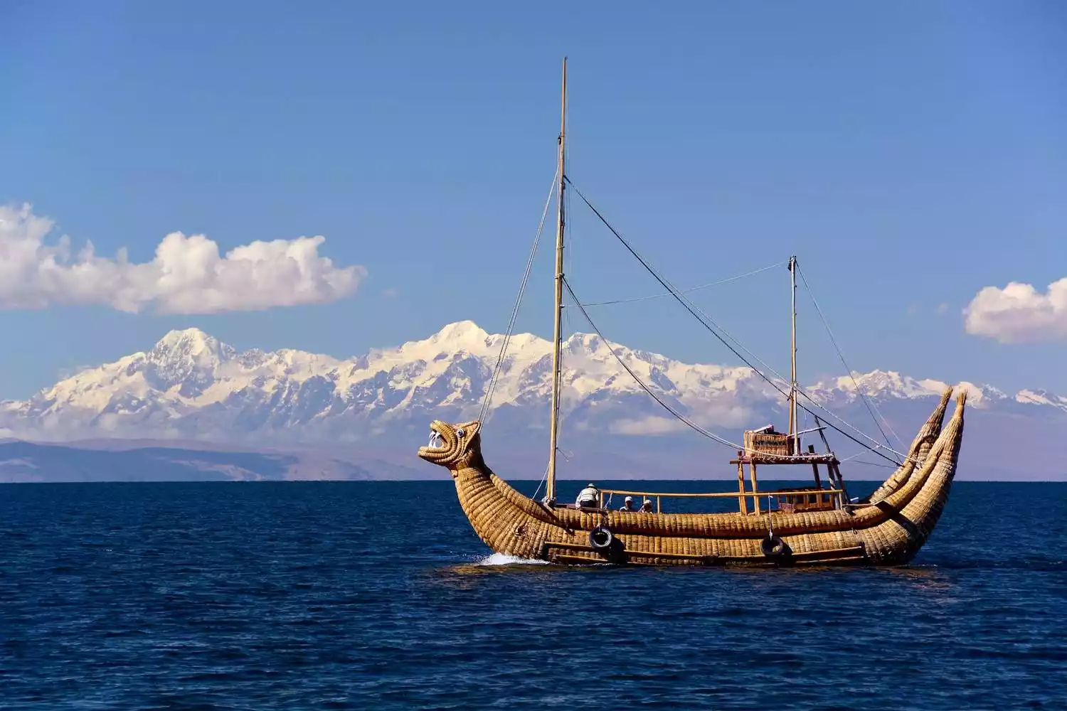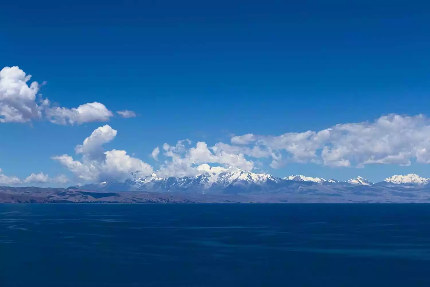 Lake Titicaca, located on the border of Bolivia and Peru, is the highest navigable freshwater lake in South America. Surrounded by snow-capped mountains, its waters are azure blue, creating a picturesque landscape. Known as South America's "Mother Lake," it has been the cradle of numerous civilizations. The previously mentioned Tiwanaku civilization, as well as the later Inca civilization, both originated on the shores of Lake Titicaca. Dozens of islands within the lake are still inhabited, preserving traditional ways of life. Lake Titicaca can be visited from either Copacabana, Bolivia, or Puno, Peru. While the scenery on both sides is similar, the cultures on each side are distinct.