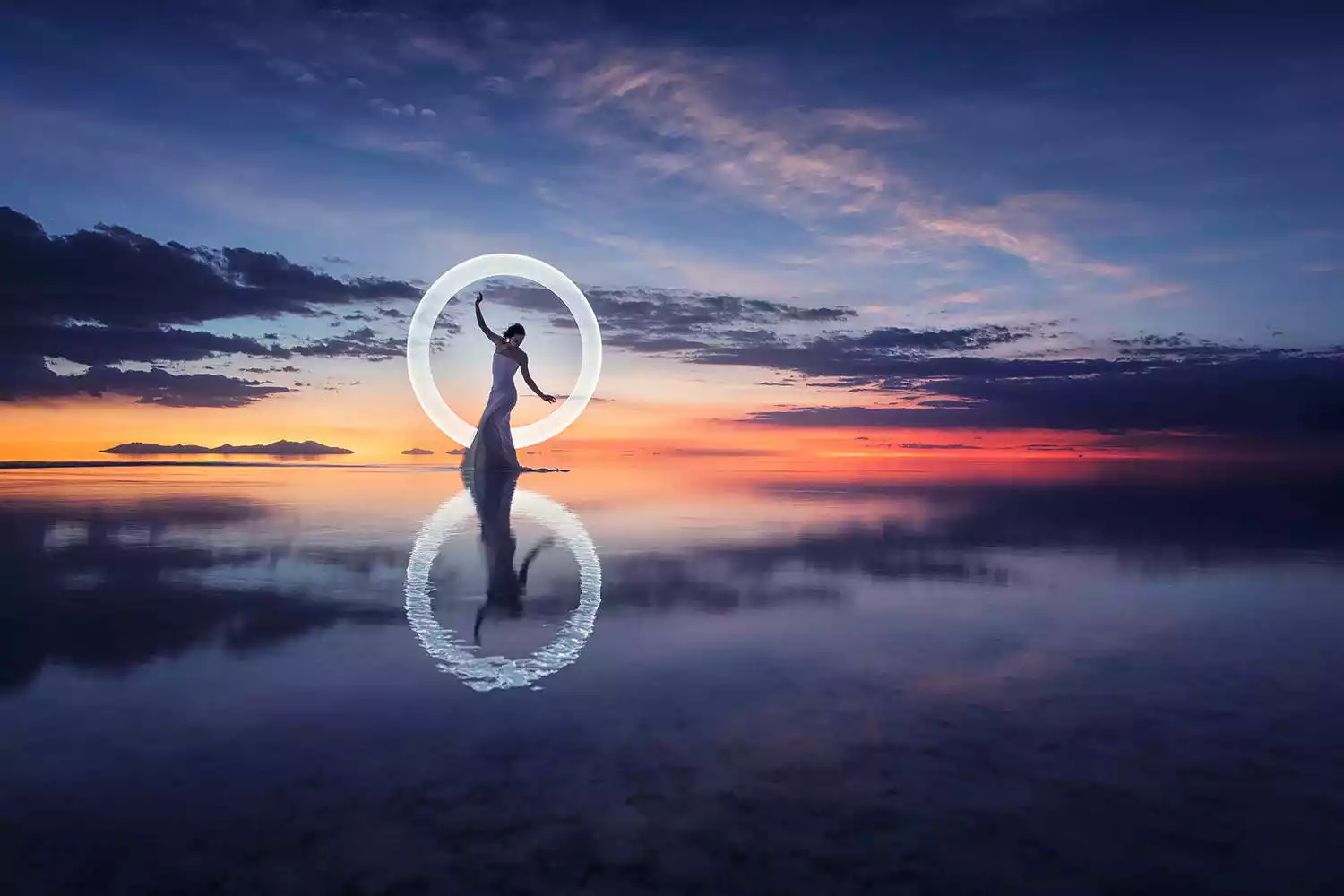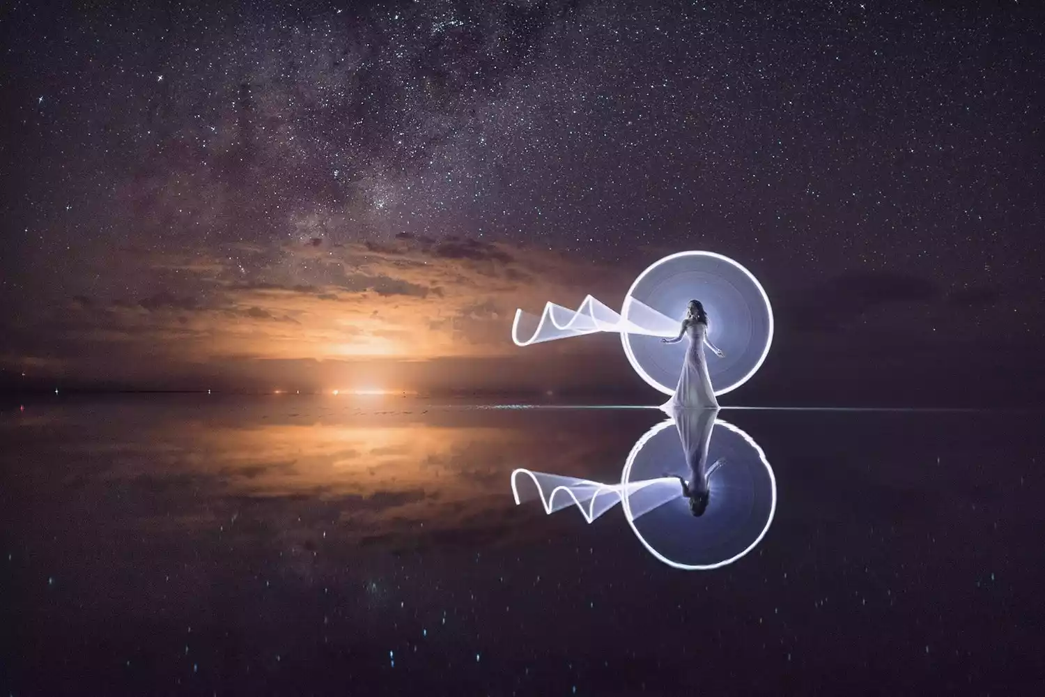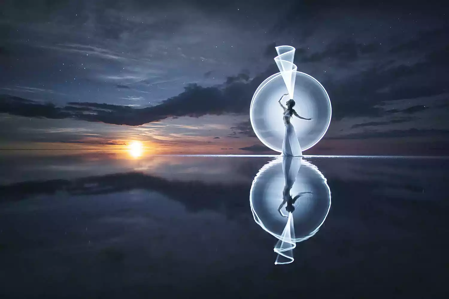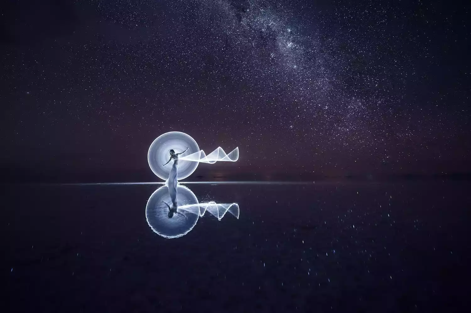 The endless, flat, arid salt pans have always been a place where people's imaginations run wild and their creativity is unleashed. Drivers who frequent the area year-round often have a few stock photography routines for tourists. The principle is simple: two people, one in front and one behind, or a prop in front and one behind, positioned at a suitable distance. The camera is kept close enough to the person in front or the prop that the photographer usually has to squat or even lie prone on the ground to create the illusion of immensity while the person behind appears tiny.