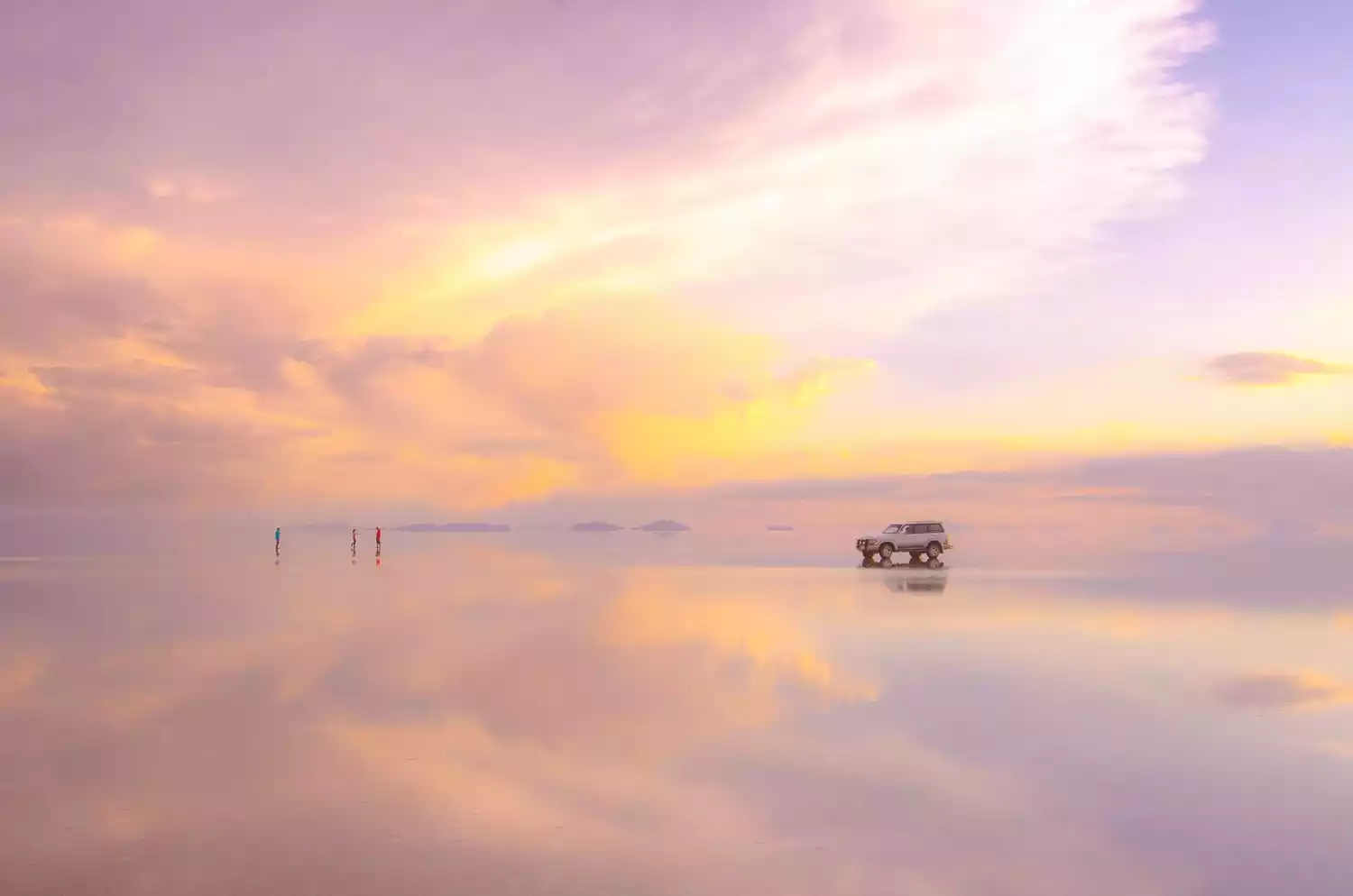 Actually, water is available in Uyuni year-round, the only difference being the size. Whether or not you can find water depends entirely on the driver! Many wealthy private tours chartering vehicles can also find water. Hodaka Travel is the cheapest, but the conditions are naturally much worse. If you want to see the mirror-like surface without wind, I recommend a sunrise tour rather than a sunset one. While sunrise tours are tiring, they are more likely to be windless. We saw photos taken by others on sunset tours, and the water was generally shimmering. So, in fact, you can find the mirror-like surface in Uyuni year-round! Uyuni is indeed more spectacular during the rainy season, but if your vacation is limited, it won't leave you with any regrets.