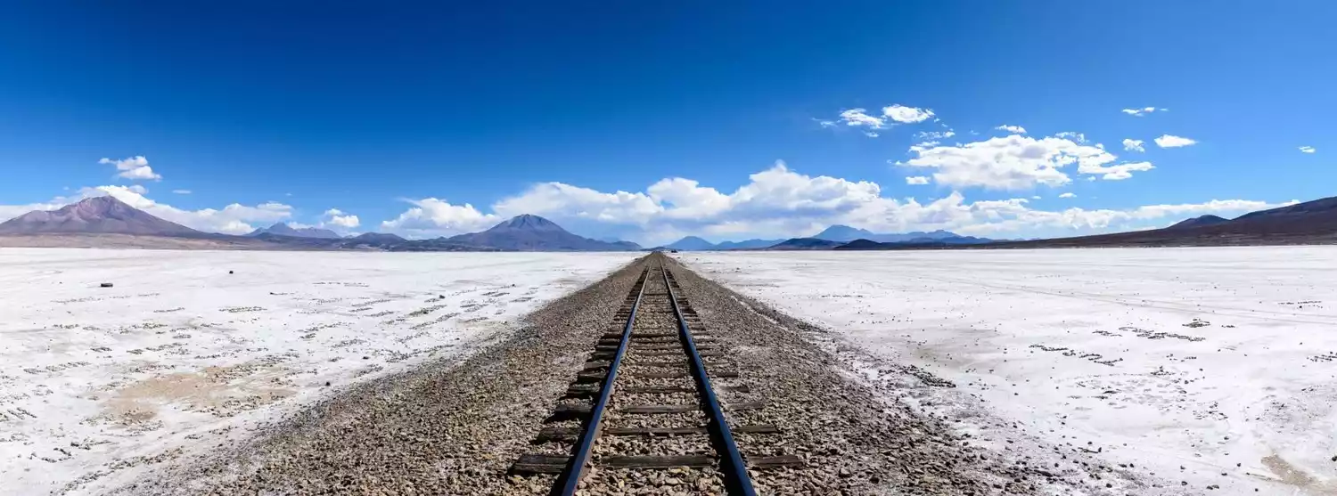 The Chiguana Salt Pans, with an altitude of about 3,600 meters, are small and not particularly attractive. The only difference is that there's an abandoned railway line passing through them, making them a great photo spot (there's a similar railway line at our Chaca Salt Lake).