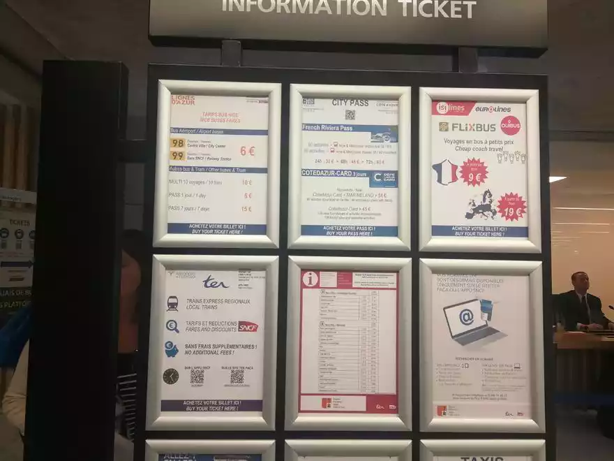 You can also buy other Nice public transport cards at the airport. A 10-trip ticket is 10 euros and a one-day pass is 5 euros.